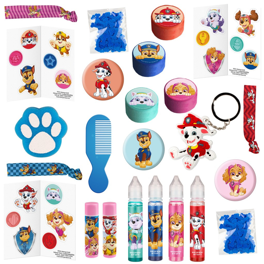 Adventní kalendář Tlapková patrola je skvělým dárkem pro všechny fanoušky těchto malých hrdinů. Obsah: 2× balzám na rty (každý 4 g), 4× koupelová bomba (každá 20 g), 4× mýdlová tyčinka (každá 30 ml), 2× papírové mýdlo (každé 6 g), 3× gumička na vlasy nebo náramek, 3× sada samolepek, 1× houbička, 1× hřeben, 1× přívěsek na klíče, 3× hračka do koupele.