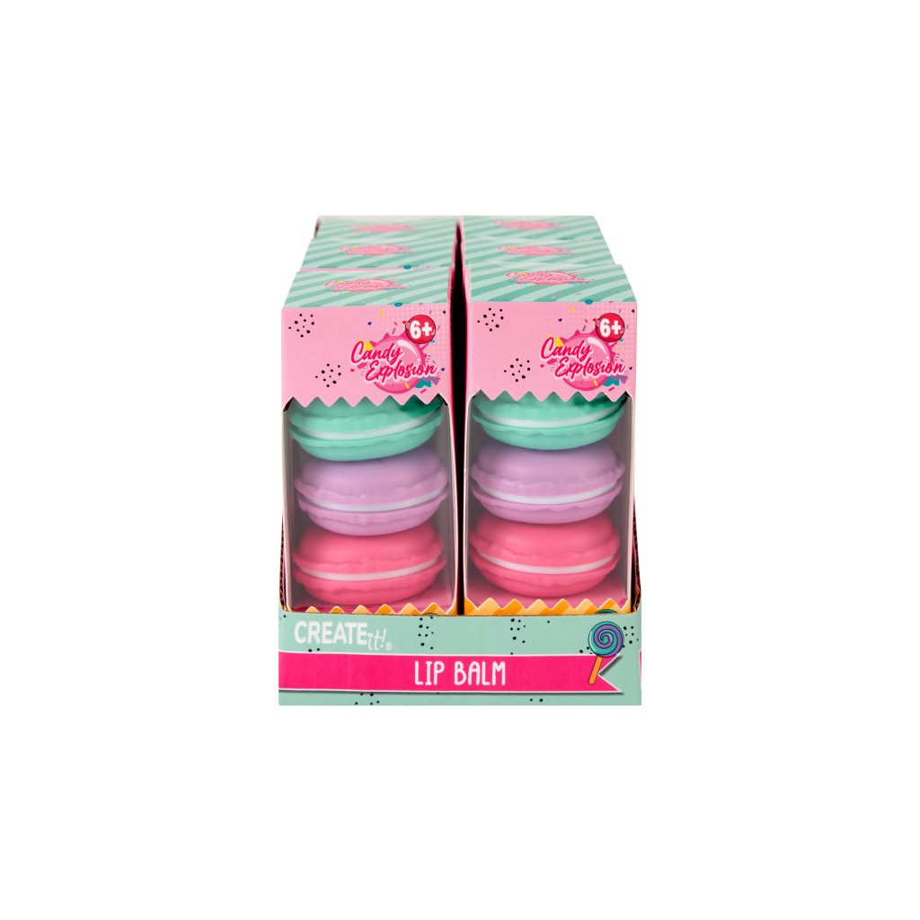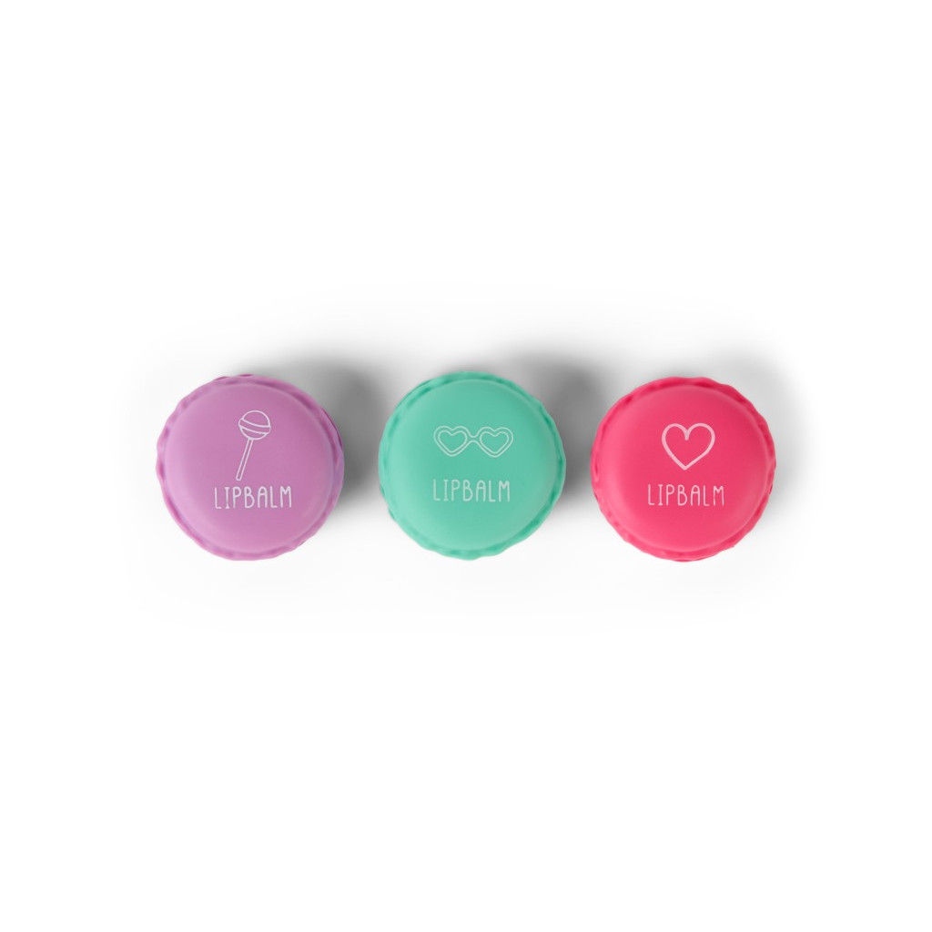 Balzám na rty Makronky Candy, 3 ks – roztomilá sada balzámů na rty ve tvaru barevných makronek. Sladké vůně, jemná péče a hydratace pro vaše rty. Ideální jako malý dárek nebo stylový doplněk do kabelky.