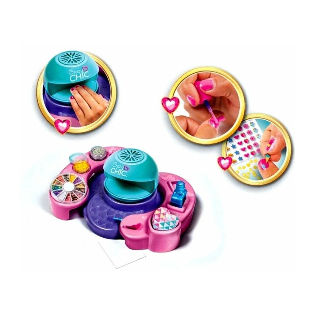 Pořiďte si sadu Crazy Chic Make up obsahující moderní produkty pro zdobení nehtů. Součástí balení jsou bezpečné laky na nehty pro děti, ozdoby na nehty, třpytky a sušička na nehty.