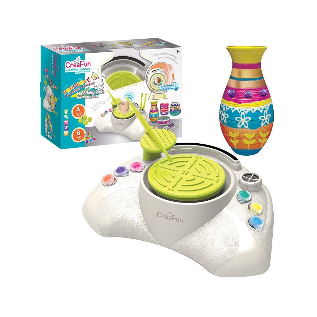 Vstupte do fascinujícího světa hrnčířství s naší kompletní sadou CreaFun – Hrnčířský kruh se sensorem. Je to dokonalý set pro všechny kreativní děti starší 7 let, které milují tvoření a chtějí se naučit něco nového. Tento hrnčířský kruh přináší výjimečnou inovaci v podobě bezdotykového ovládání. Díky dvěma rychlostem otáčení si můžete vybrat, jak rychle nebo pomalu budete pracovat, což vám poskytuje maximální kontrolu nad tvorbou. Balíček obsahuje vše, co potřebujete k tvorbě svých vlastních keramických výrobků – hrnčířskou hlínu, pomůcky na zpracování hlíny, širokou paletu barev, razítka pro dekoraci, kamínky pro dodání jiskry a štětec pro precizní malování. Výhody produktu CreaFun – Hrnčířský kruh se sensorem: