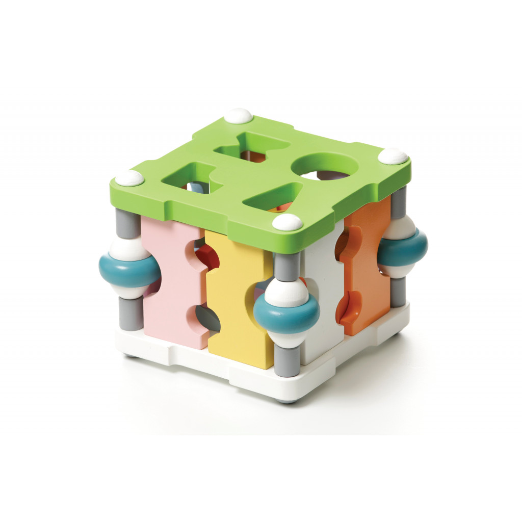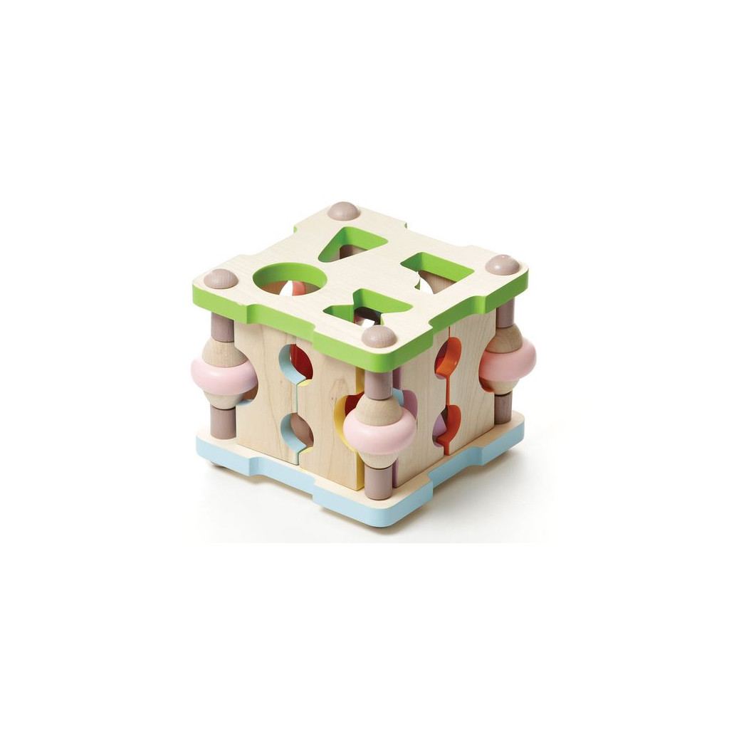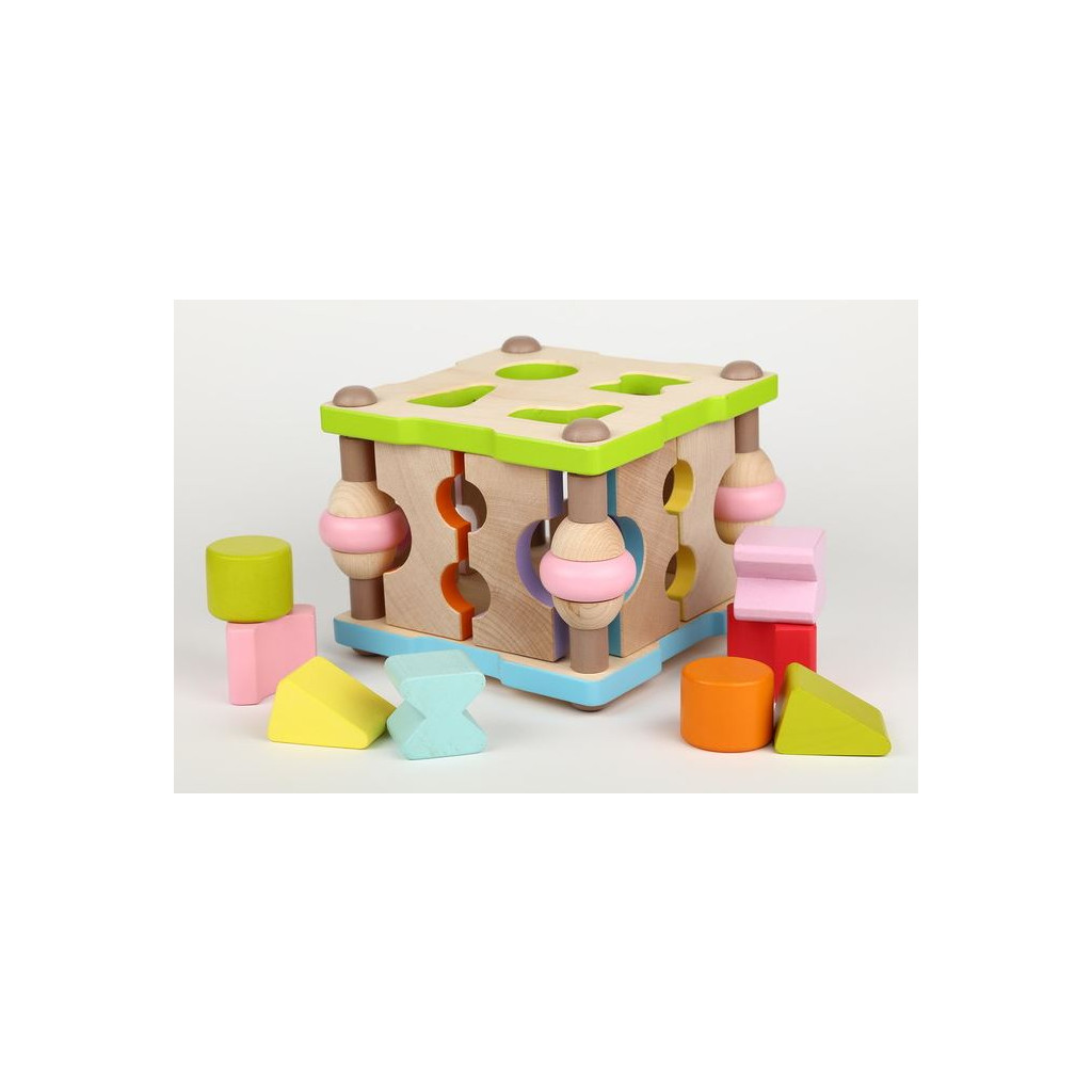 Cubika Vkladačka kostkaje dřevěná vkládačka pro nejmenší, se kterou děti již od pár měsíců rozvíjejí jemnou motoriku, posilují svaly na ruce a učí se koordinaci oko-ruka.