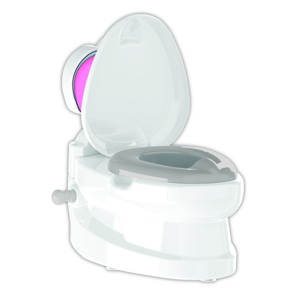 Dětská toaleta – nočník se světlem a zvukem – zvukový efekt splachování toalety. 5bodová protiskluzová poddložka, s držákem na toaletní papír, znovu uzavíratelné víko. Vyjímatelný zásobník pro snadné vyprazdňování a mytí. Vyrábí se bez použití kovových spojovacích prvků, jako jsou šrouby a svorníky. Nehrozí tak koroze (rez) a především bezpečné pro děti. Snadno čistitelné a hygienické. Snadno přenosný. Elegantní a ergonomický design. Vzhledem k tomu, že vypadá jako skutečná toaleta udrží pozornost vašeho dítěte. Vaše dítě se snadno naučí chodit na toaletu…