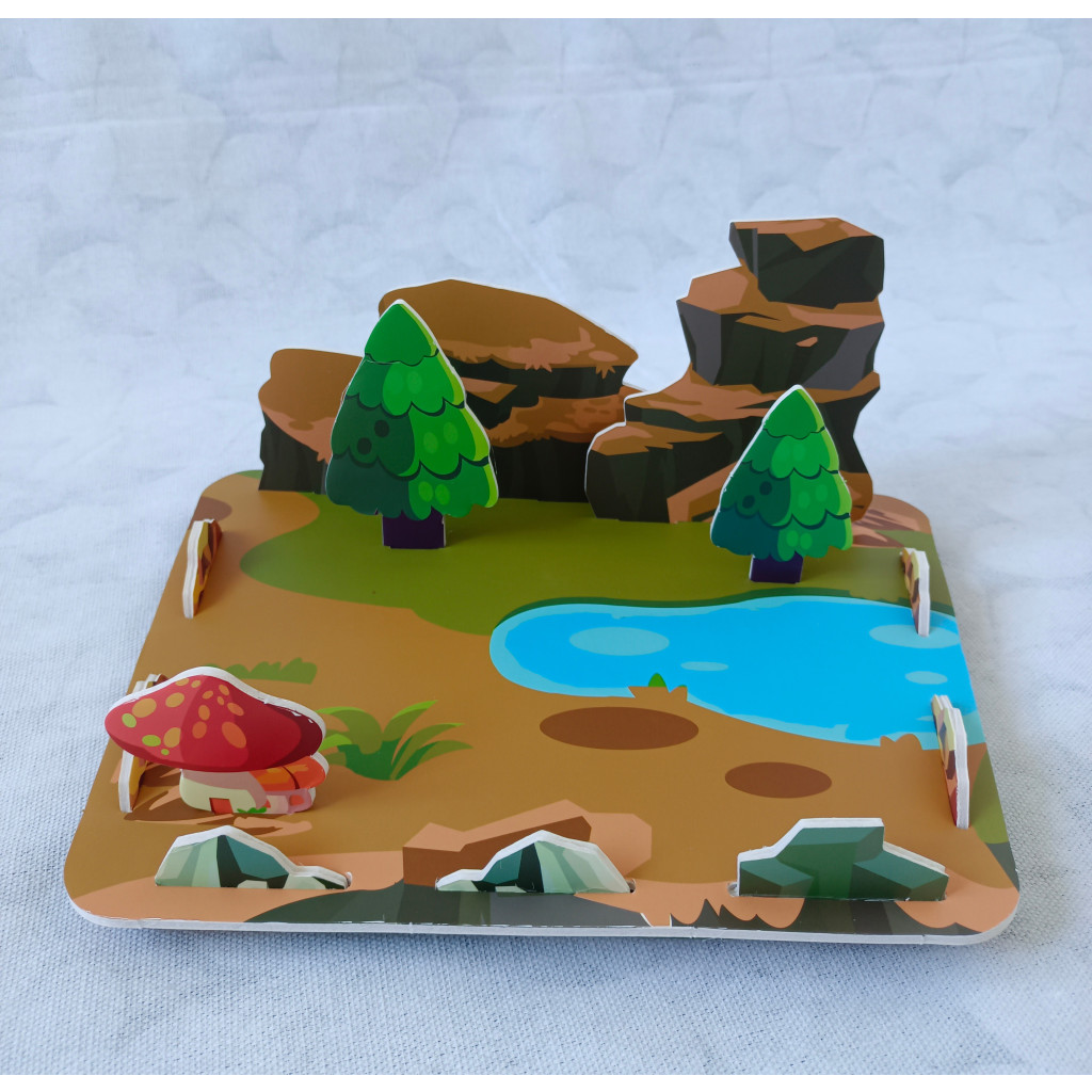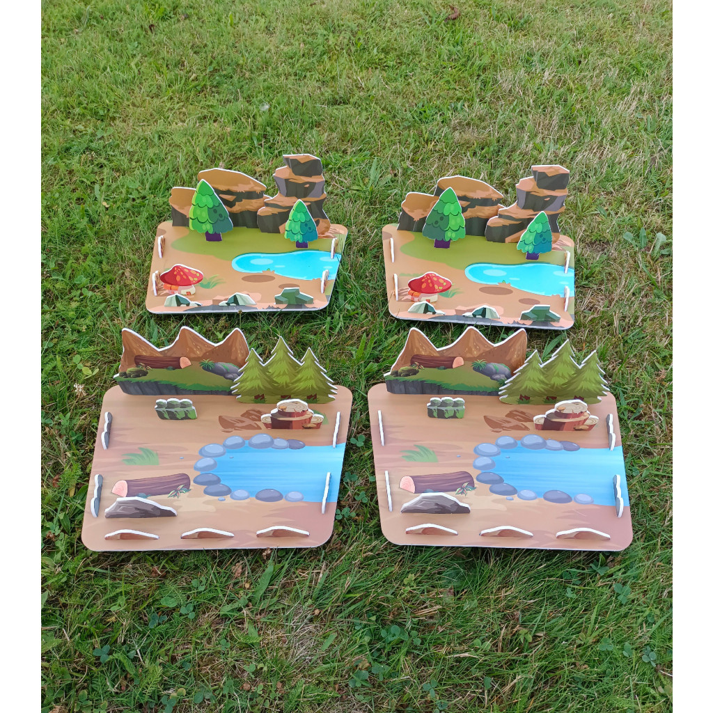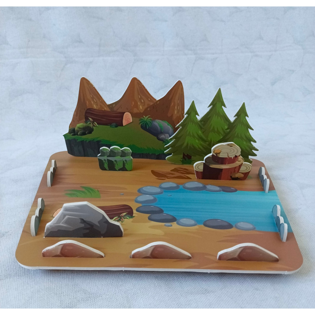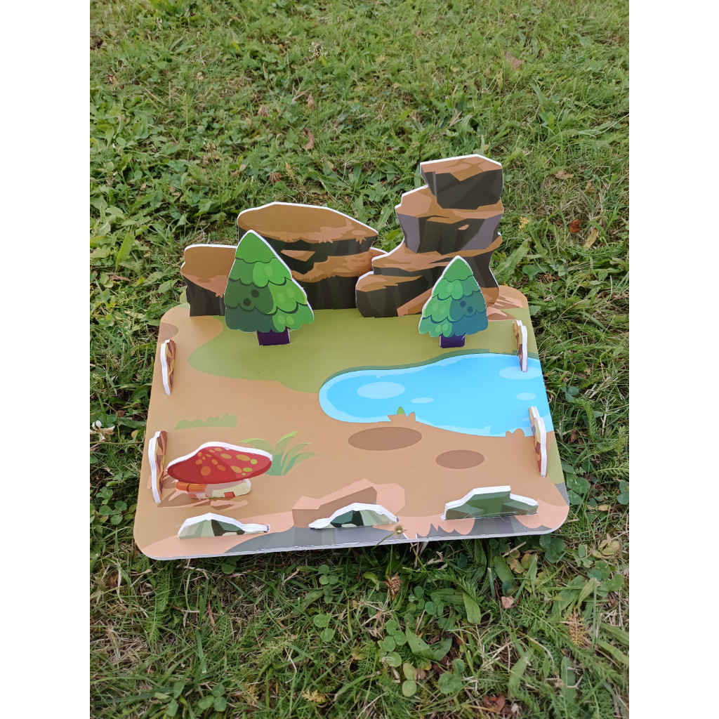 Set obsahuje: 4 velké magnetické dinosaury (2x Triceratops, 2x Tyrannosaurus rex), doplňky pro sestavení scény krajiny (2x krajina se skálami, 2x krajina s lesem/horami)