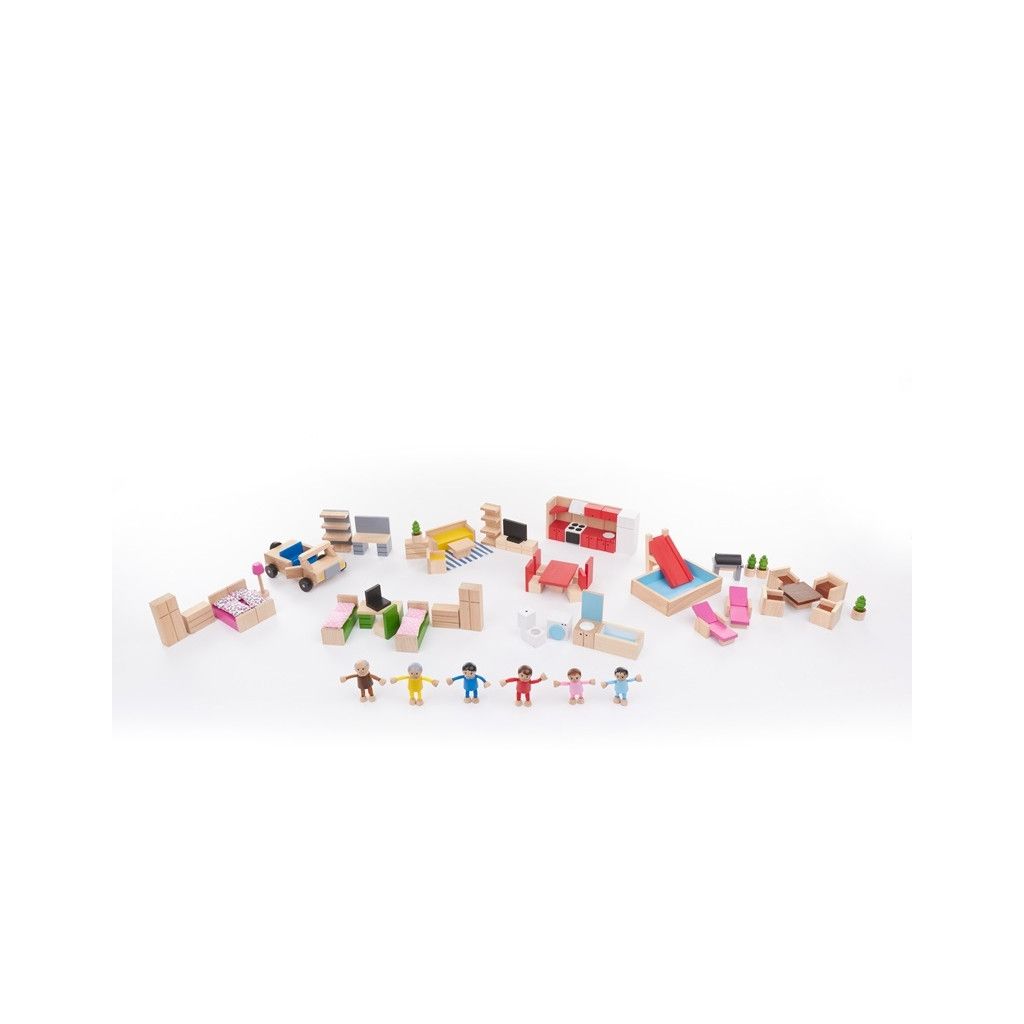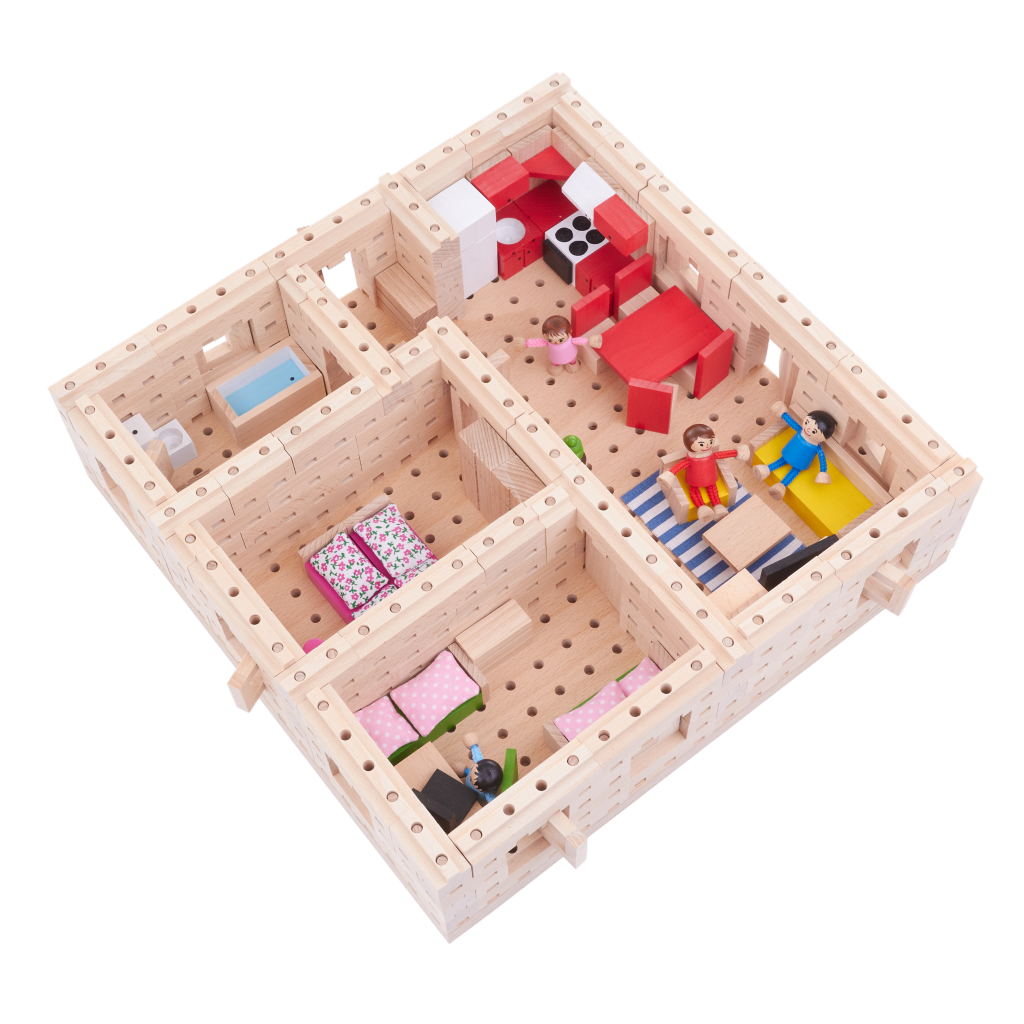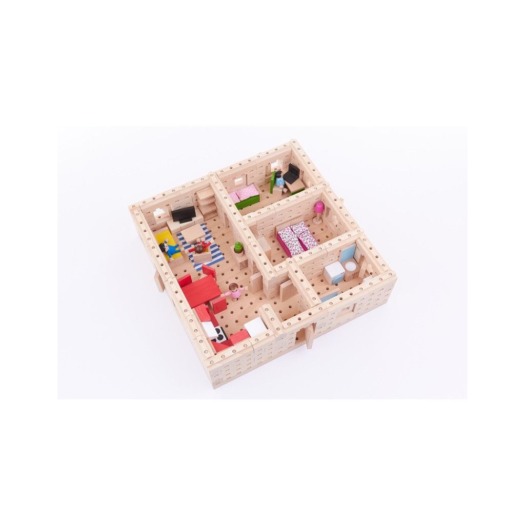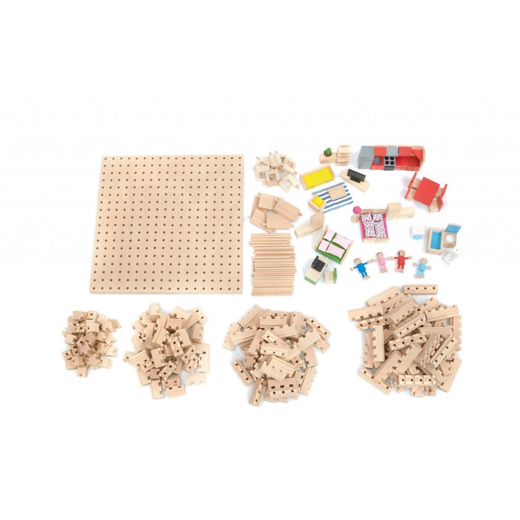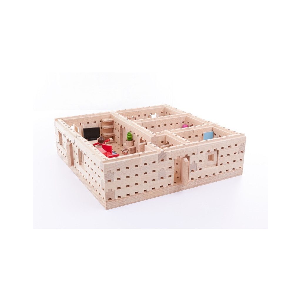 Máte doma malého architekta? Tato sada je pro něho jako stvořená. Čtyři dřevěné postavičky už se těší, jaký pro ně tentokrát vaše dítě postaví domeček. Budete překvapeni, co všechno lze z těchto kostek vytvořit.