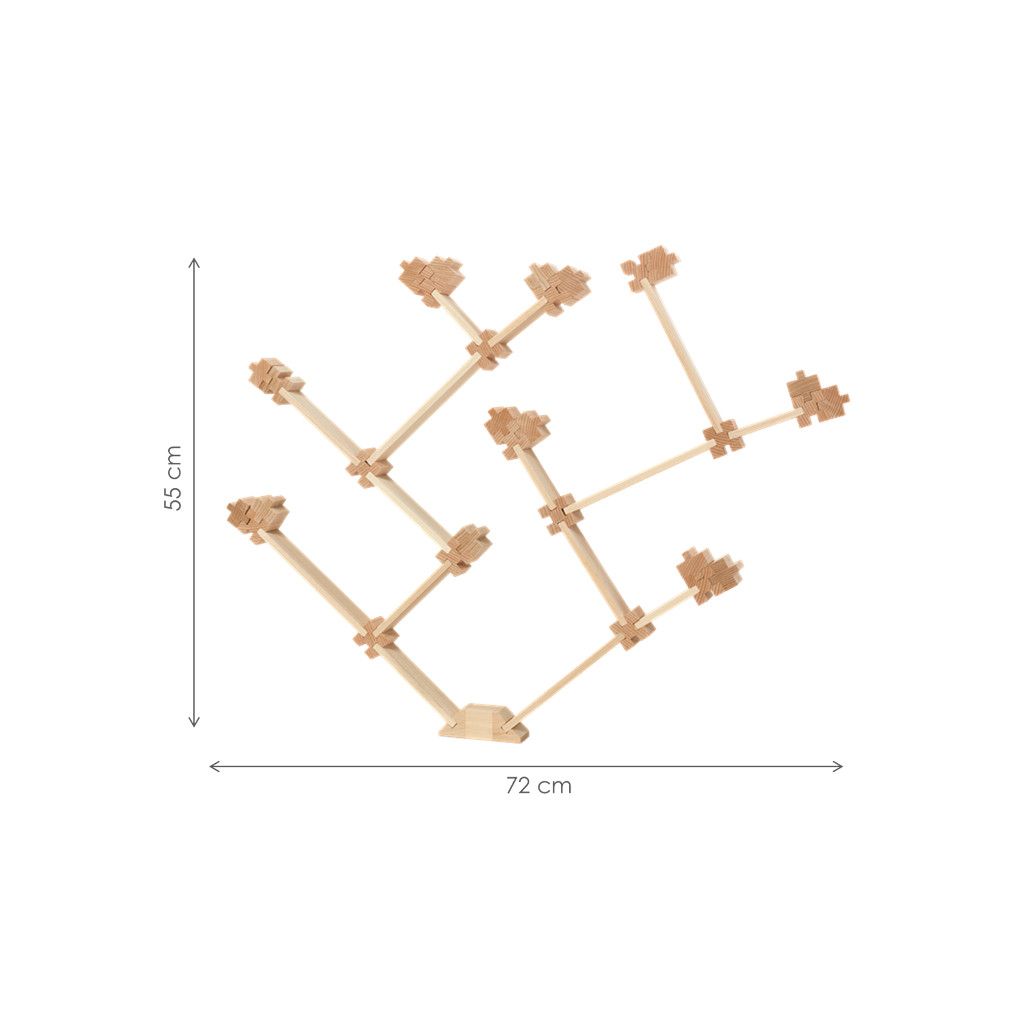 Dřevěná stavebnice Troxi je určena nejen pro děti, ale i dospělé. Objevte různé způsoby skládání a nechte svá díla růst pod rukama. Jednou to může být strom, jindy geometrický tvar nebo kytička. Jednotlivé kostky a destičky drží pohromadě drážkami a je jen na vaší fantazii, jak je k sobě spojíte a co vzájemný spojováním vznikne. Skládání je vhodné pro všechny věkové kategorie. Je to skvělý způsob zábavy, odpočinku i relaxace, při kterém procvičíte jemnou motoriku, ale i prostorové vnímání.