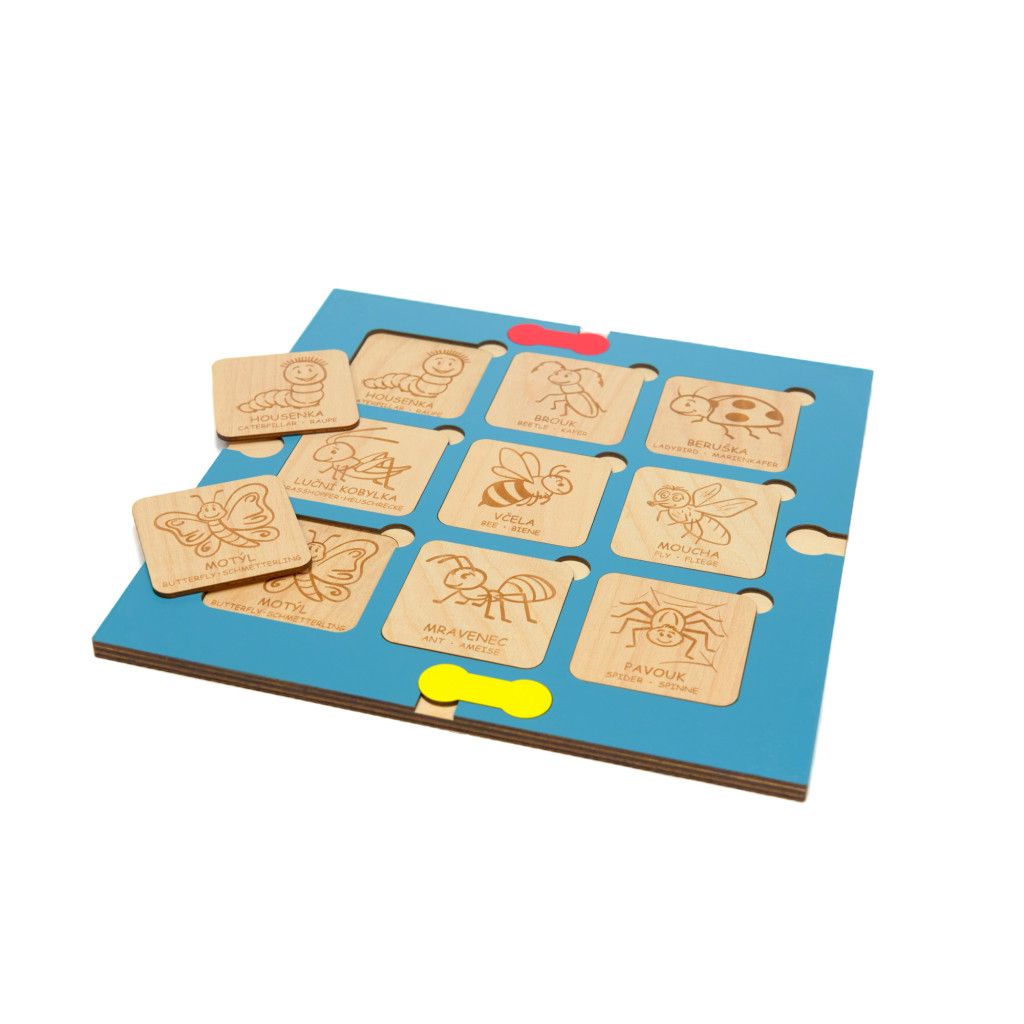 Vkládačka vhodná k procvičovaní slovní zásoby v češtině i cizích jazykách nebo také hledání stejných obrázků. Vkládačka má i další varianty, jak si s ní hrát: