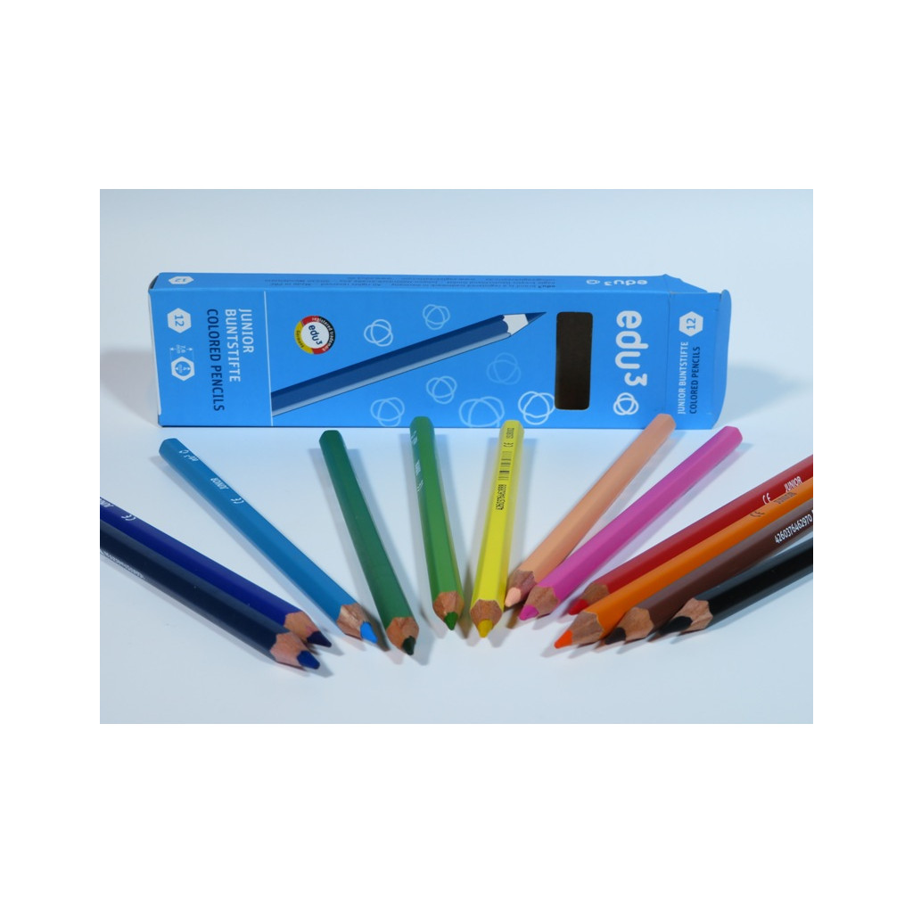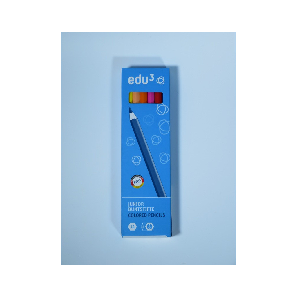 EDU3 Junior šestihranné pastelky, tuha 4 mm, 12 barev v papírové krabičce