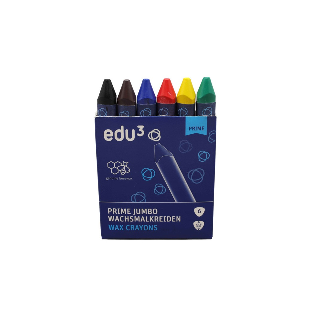 EDU3 Trojhranné Jumbo voskové pastely s opravdovým včelím voskem K06 Basic, 6 ks v základních barvách