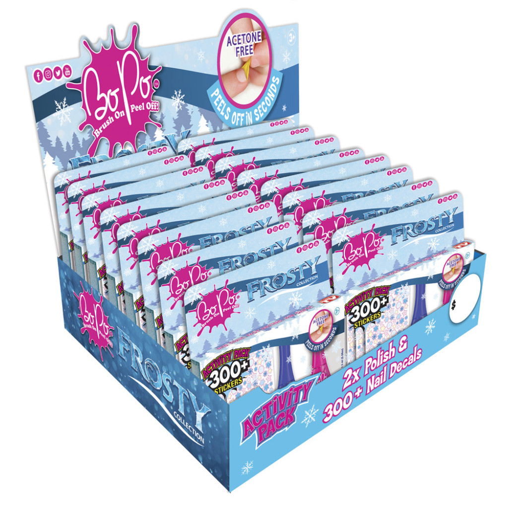 Revoluce ve světě manikúry. Již žádný odlakovač! Naneste lak, nechejte ho zaschnout a užívejte si krásné nehty. Chcete změnit styl? Chcete si užít další zářivou barvu? Jednoduše lak ze svého nehtu sloupněte a hned můžete lakovat znovu. Pozor. NOVINKA! Nyní si užijte Bo-Po laky s úžasnými vůněmi. Tyto laky jsou zdravotně nezávadné, šetrné k dětským nehtíkům a neobsahují acetylen. Lahvička je navržena tak, že se nevylije. Pro děti od 3 let.