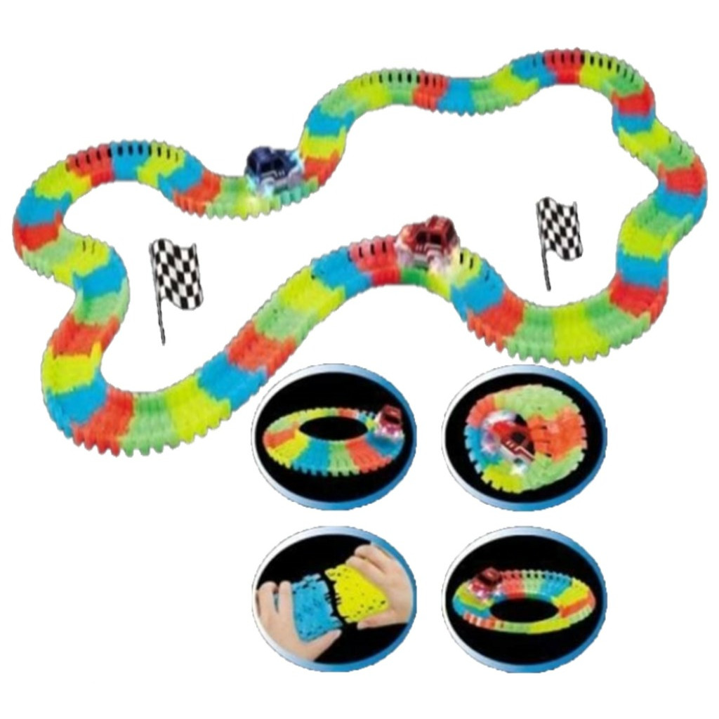 Dráha svítící ve tmě + autíčko s LED světlem 220 ks