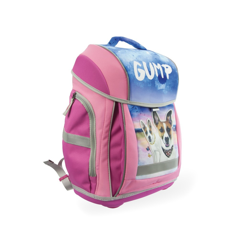 Školní batoh s motivem GUMP bude skvělým doplňkem každé školačky. Batoh má praktické kapsy, zpěvněná záda, ergonomicky tvarované ramenní popruhy a pružnou zapínací hrudní sponu pro větší pohodlí. Rozměry batohu jsou 49 × 29 × 20 cm.
