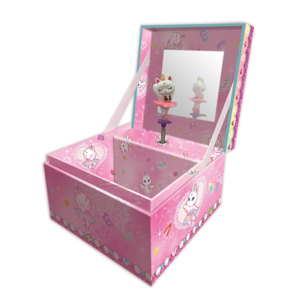 Uložte si své poklady do šperkovnice s krásným designem kočičí baletky. Po natažení a otevření hraje šperkovnice hudbu. Skvělý doplněk pro malé princezny a parádnice. Výrobek je z pevného, odolného papíru s hladkou povrchovou úpravou. Vhodné pro děti od 6ti let.