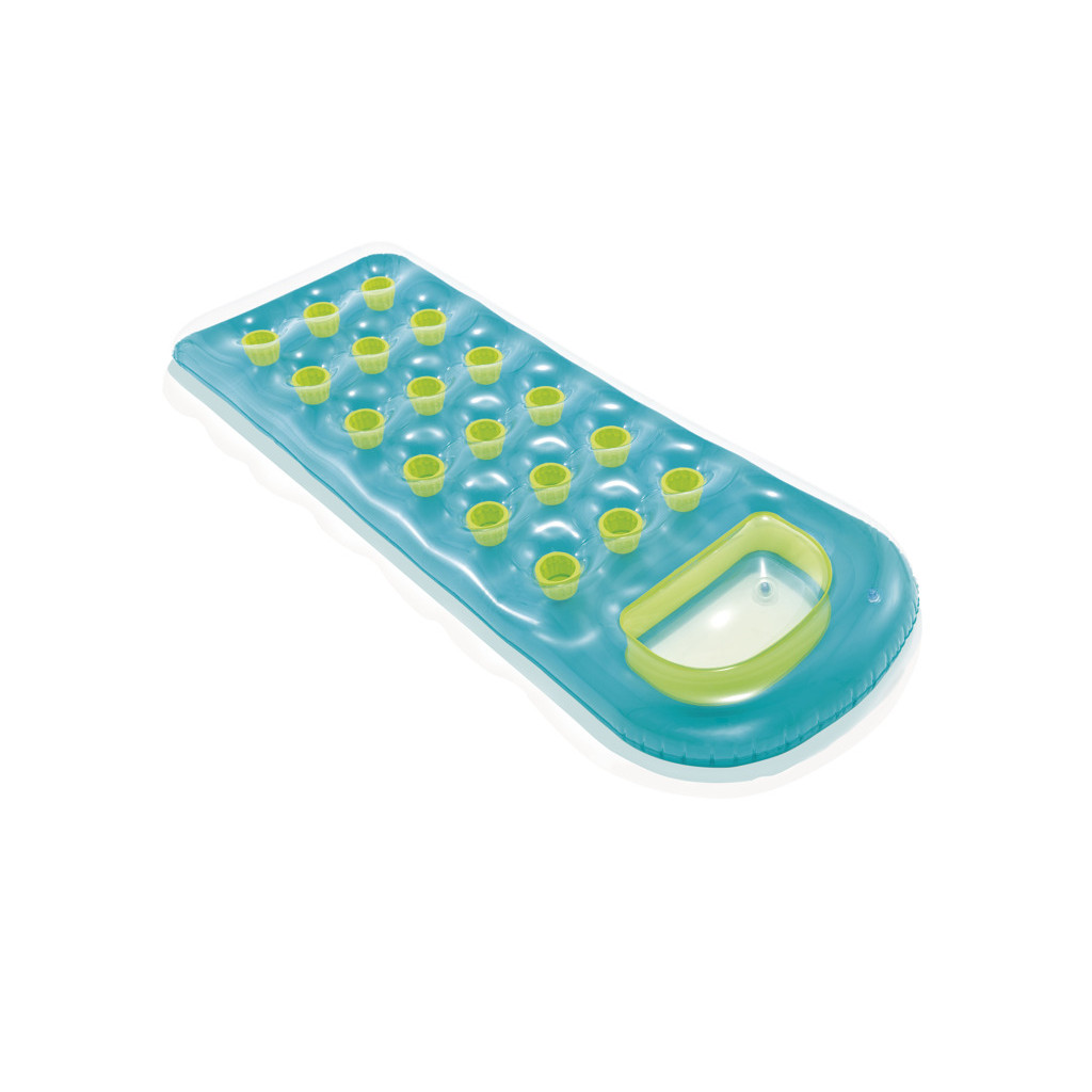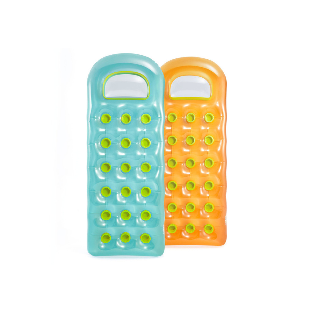 Vodní lehátko s okýnkem, 18-ti kapsové o velikosti 188×71 cm. Dvě vzduchové komory, vrchní vrstva průsvitná a spodní s berevnými kapsami. Dvě barevné provedení. Tvarovaný polštář pro extra komfort. Opravná sada přiložena. Vyrobeno z kvalitního vinylu.