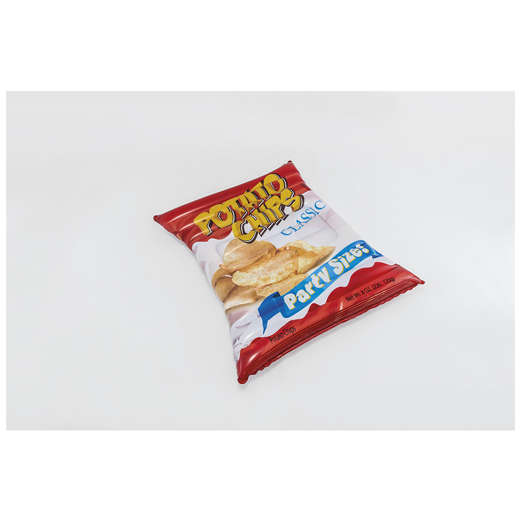 Nafukovací brambůrky Chips s realistickým potiskem o velikosti 1,78 m x 1,40 m. Opravná záplata přiložena. Vyrobeno z kvalitního vinylu.