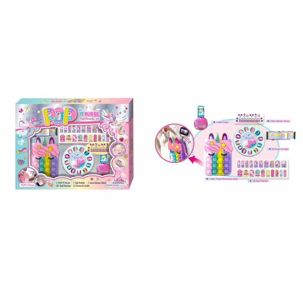 Nádherná sada nehtového studia s POP IT kabelkou. Sada obsahuje 12 nalepovacích nehtů, 24 nálepek na nehty, 1 lak na nehty a ozdobné kamínky. Zažij spoustu zábavy a ozdob sebe i kamarády. Vhodné pro děti od 6ti let.