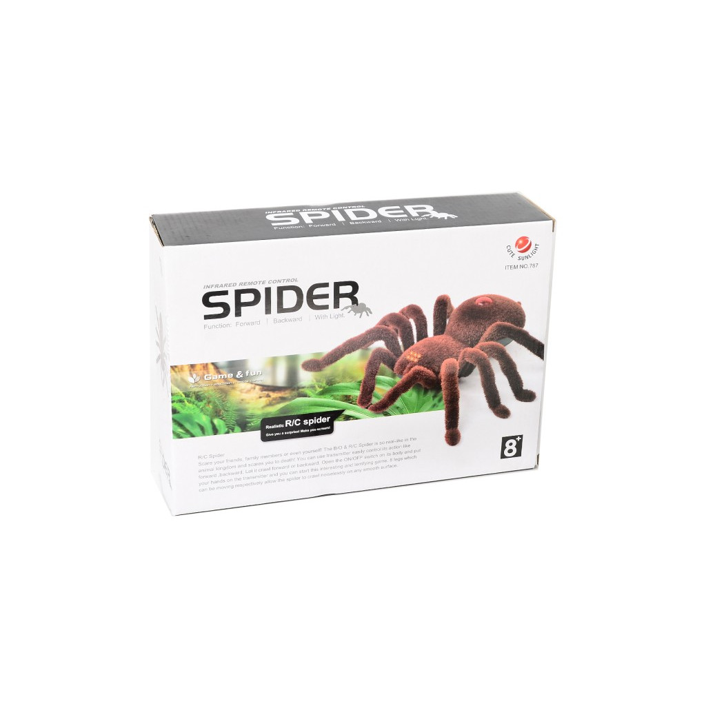 Maximální rychlost 0,2 km/h. Dosah dálkového ovládání 4 m. Pavouk se může pohybovat dopředu a dozadu, se světelným efektem očí. S pavoukem můžete vyděsit rodinu a přátele, a to díky možnosti ovládání na dálku. Všech 8 nohou se realisticky pohybuje nezávisle na sobě. Tělo pavouka je pokryto umělou srstí, která je na dotek jako skutečná.