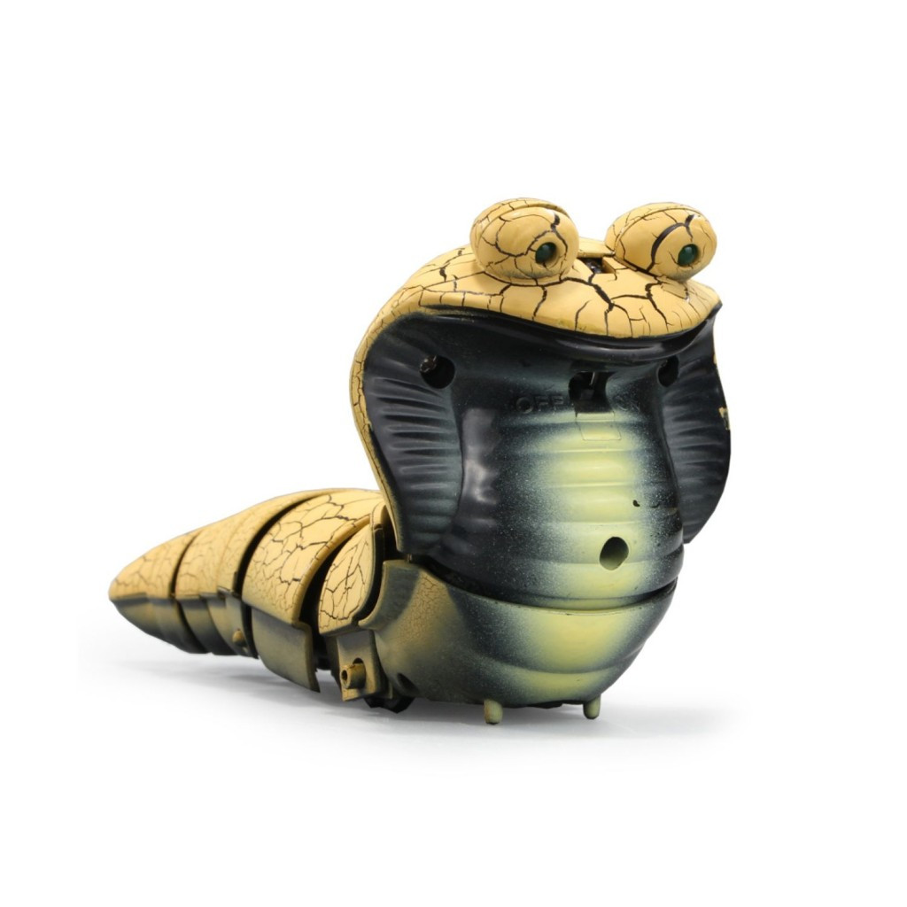 Mini kobra na dálkové ovládání, která se pohybuje i svítí. Kobra se pohybuje vpřed, vzad, do stran. V balení naleznete také ovladač. Hračka vyžaduje 3 x LR44 baterie, jsou součástí, ovladač vyžaduje 3 x LR44 baterie, jsou součástí. Infrared, dosah ovladače až 8 metrů, hrací doba 20 min. Na výběr dvě barevné varianty. Vhodné pro děti od 6ti let.