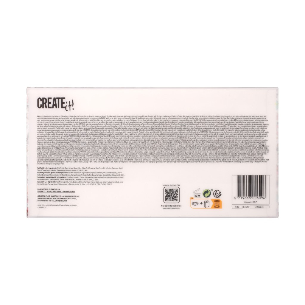Make up sada s taštičkou – sada obsahuje 1× oční stíny, 1× pilník, aršík se samolepkami na nehty, 1× pilník, 1× rtěnka, 1× lesk a make up taštička.