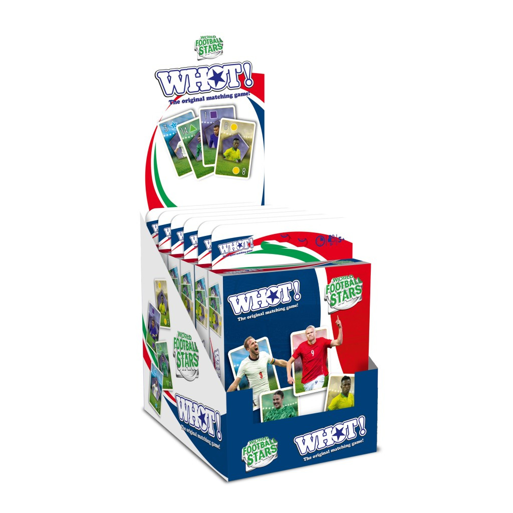Dynamická karetní hra WHOT! v edici věnované světovým fotbalovým hvězdám. Hráči se snaží zbavit všech svých karet tím, že je správně přiřazují podle tvaru nebo čísla, a využívají speciální akční karty pro zvrat ve hře. Ideální pro fanoušky fotbalu všech věkových kategorií. Obsahuje česká pravidla.