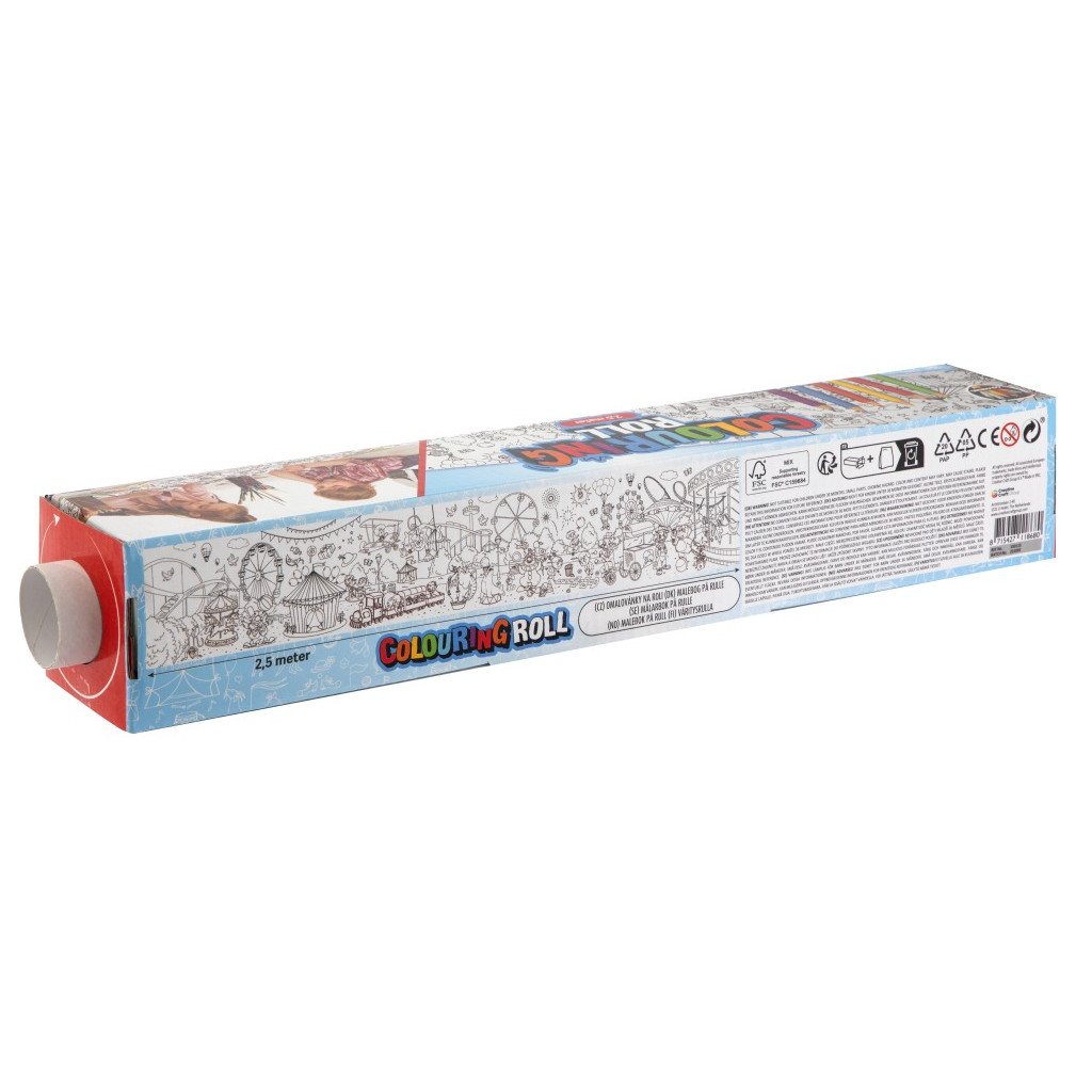 Vymalovávací role s předtištěnými obrázky – délka role 2,5m. Součástí balení 6 pastelek. Velmi snadné rolování tam i zpět.