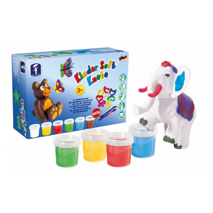 Obsahuje 6 uměleckých vykrajovátek, 6 kelímků modelovací hmoty po 80 g, 6 lahviček barvy po 30 g, štětec, 2 nástroje a váleček.