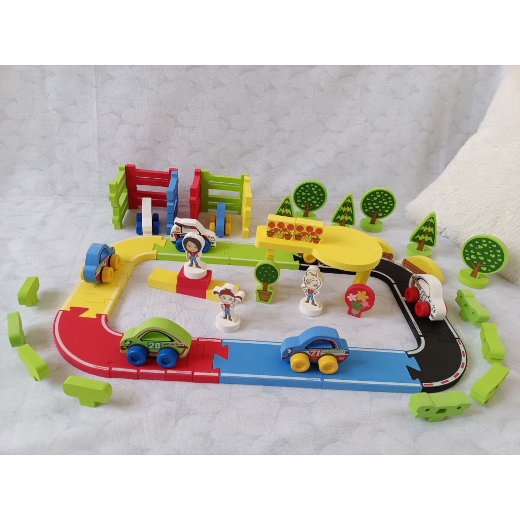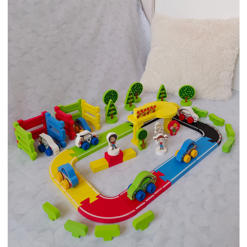 FOAMINIS Rallye závodní okruh s auty, 77 dílů, pěnová stavebnice