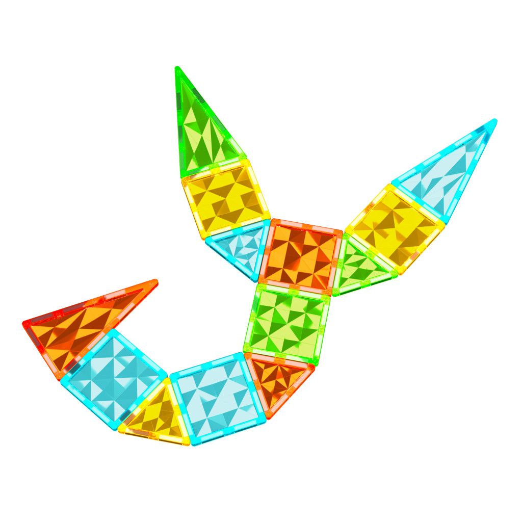 Geomag Magnetic Tiles 16 dílků obsahuje magnety na všech stranách jednotlivých tvarů. Lze tak snadno vytvářet jakékoliv 2D obrazce nebo 3D struktury. Stavebnice rozvíjí manuální zručnost, kreativitu a fantazii, učí barvy, geometrické tvary, ale hlavně si s ní děti užijí spoustu zábavy. Obsahuje 16 průhledných strukturovaných dílků ve čtyřech barvách – 8 čtverců, 4 rovnostranné a 4 rovnoramenné trojúhelníky. Vhodné od 3 let.