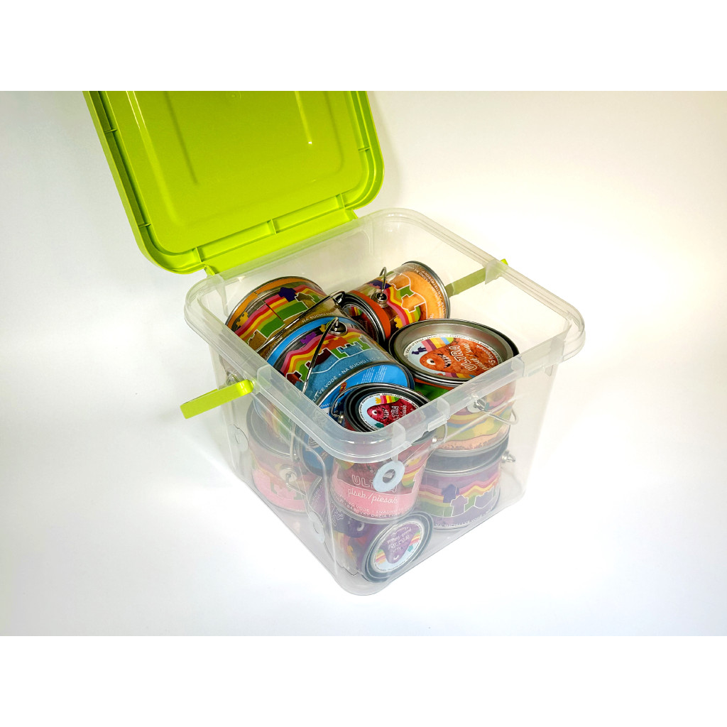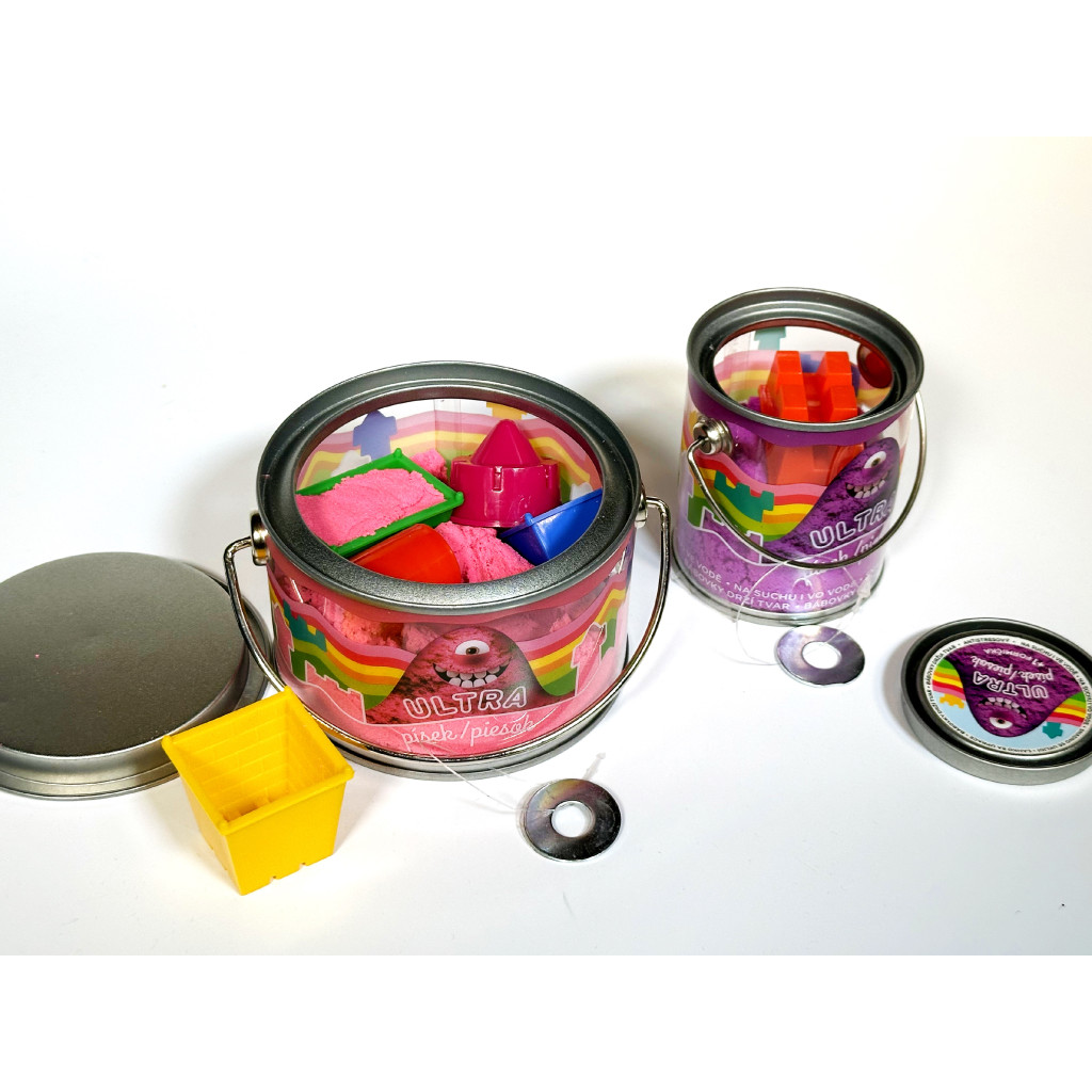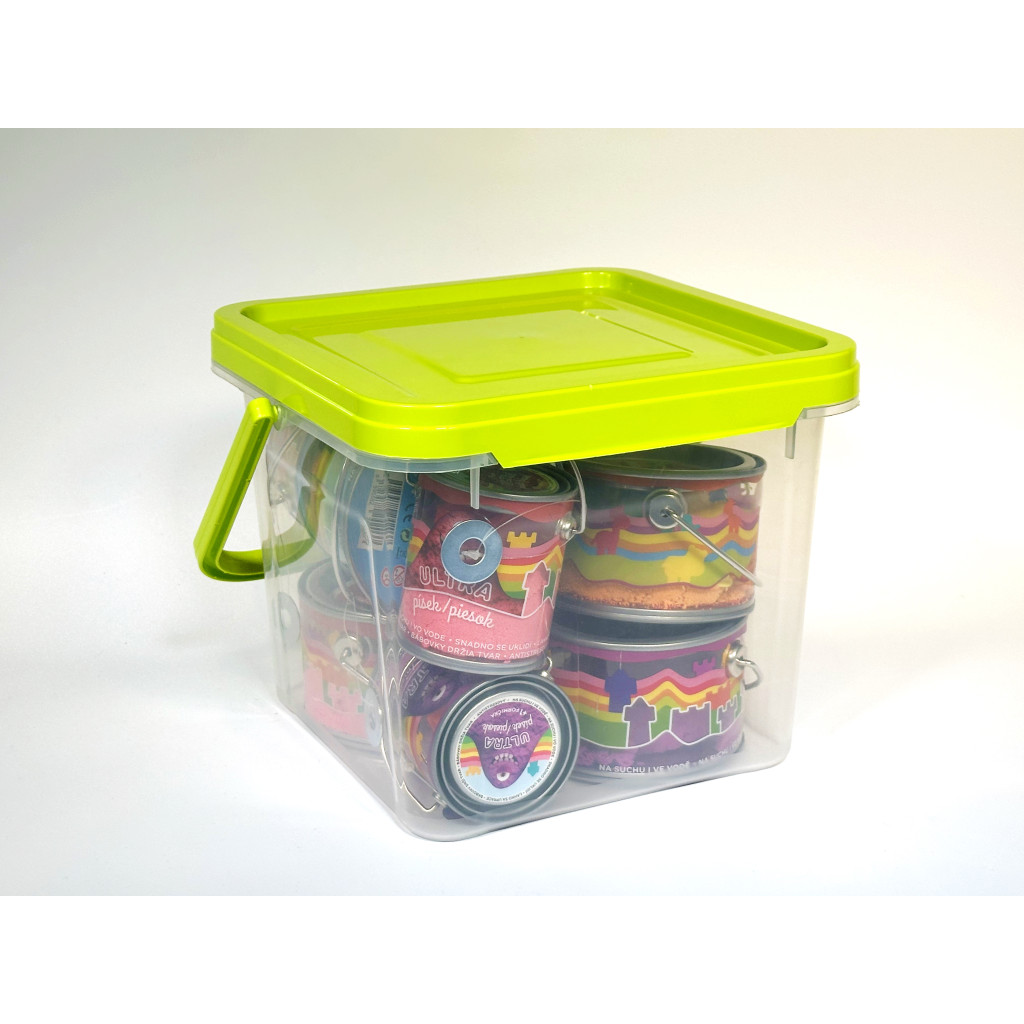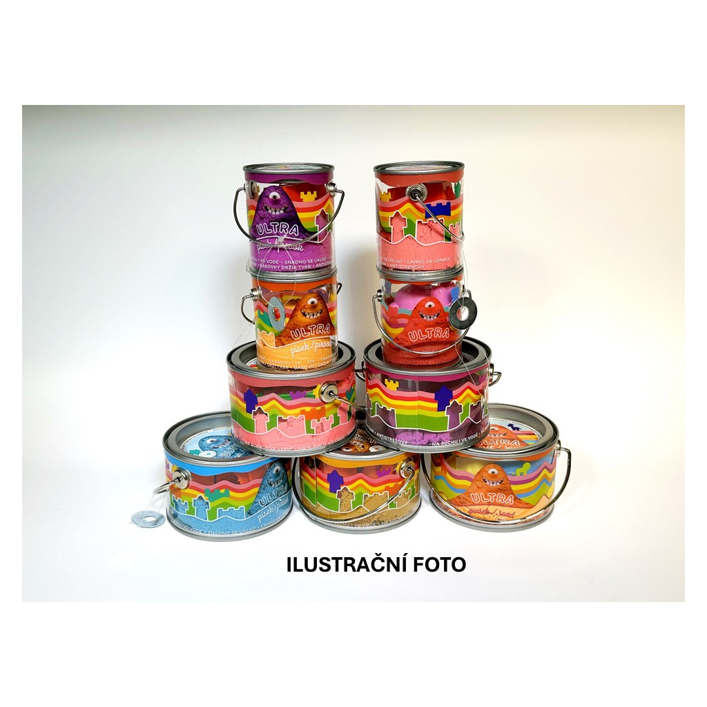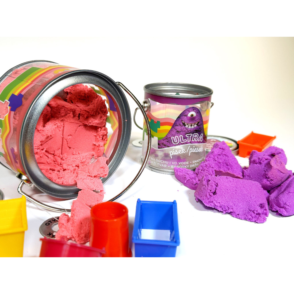 Kinetický písek je balen v plechovkách po jednotlivých barvách, včetně formiček. Celý set je balen v praktickém úložném boxu.