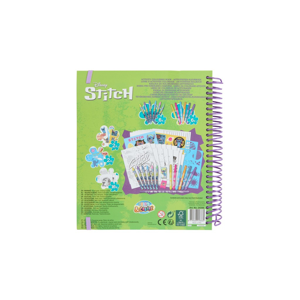 Zábavná kniha plná omalovánek a kreativních aktivit inspirovaných oblíbeným hrdinou Stitchem. Děti se mohou ponořit do světa fantazie, vybarvovat své oblíbené postavy a plnit hravé úkoly, které rozvíjejí jemnou motoriku a kreativitu. Skvělý dárek pro malé fanoušky! Balení obsahuje omalovánku, tužku, gumu, voskovky , fixy a šablony.