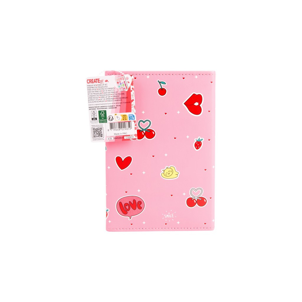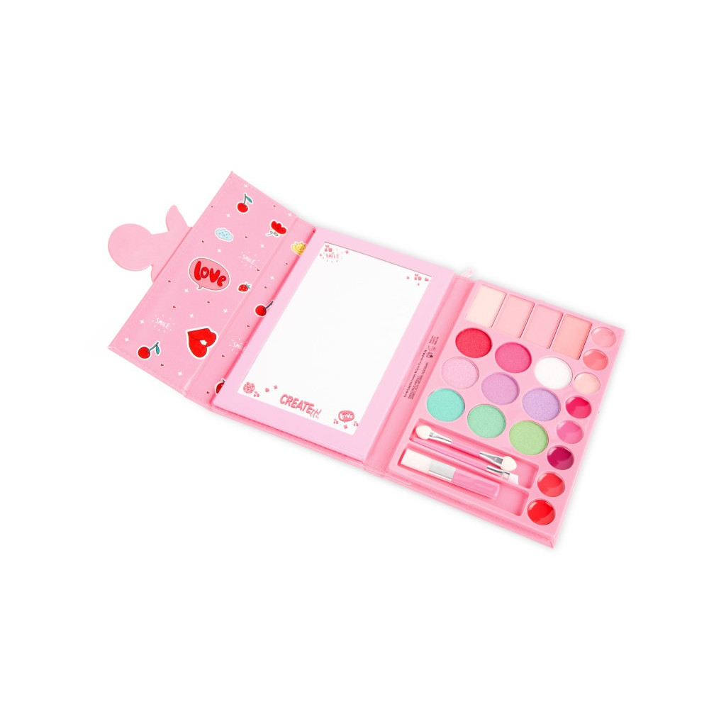 Kniha s líčením na magnet – hniha po rozevření obsahuje aplikátor na oční stíny, štetec, šteček, 4× make up, 9 barev očních stínů a 8 barev rtěnek + zrcátko.