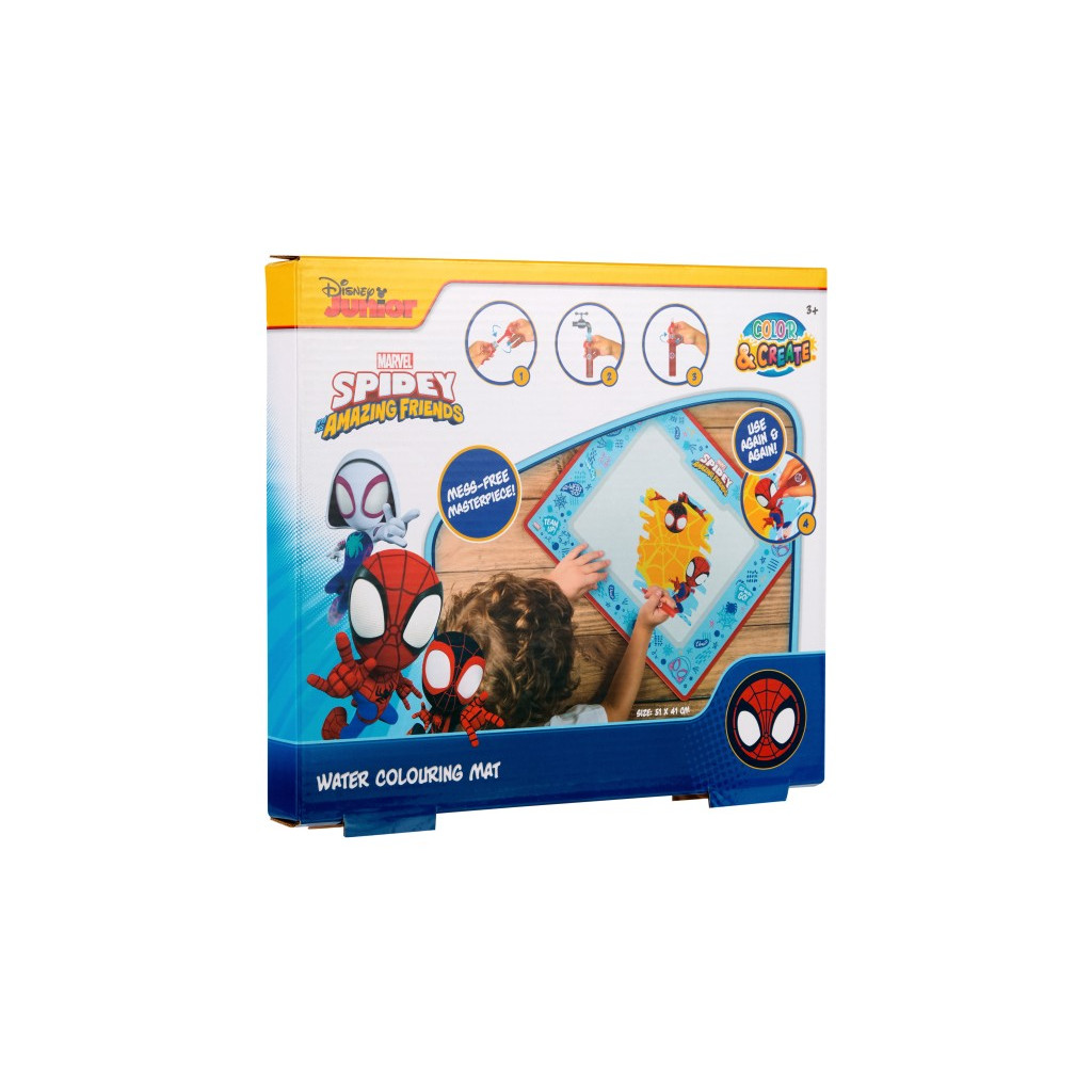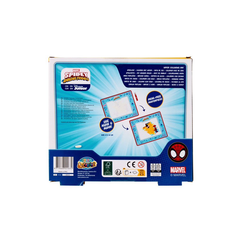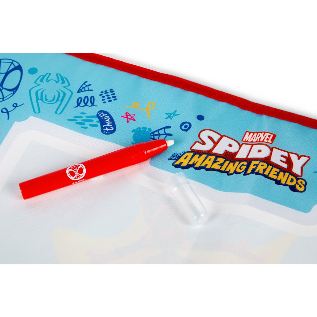 Kreativní podložka na vodní malování s oblíbeným hrdinou Spidey. Děti mohou pomocí speciálního vodního pera vybarvovat obrázky na podložce – po zaschnutí voda zmizí a mohou začít znovu.Opakovaně použitelná – žádné barvy ani nepořádek,snadno přenosná, vhodná na doma i na cesty.