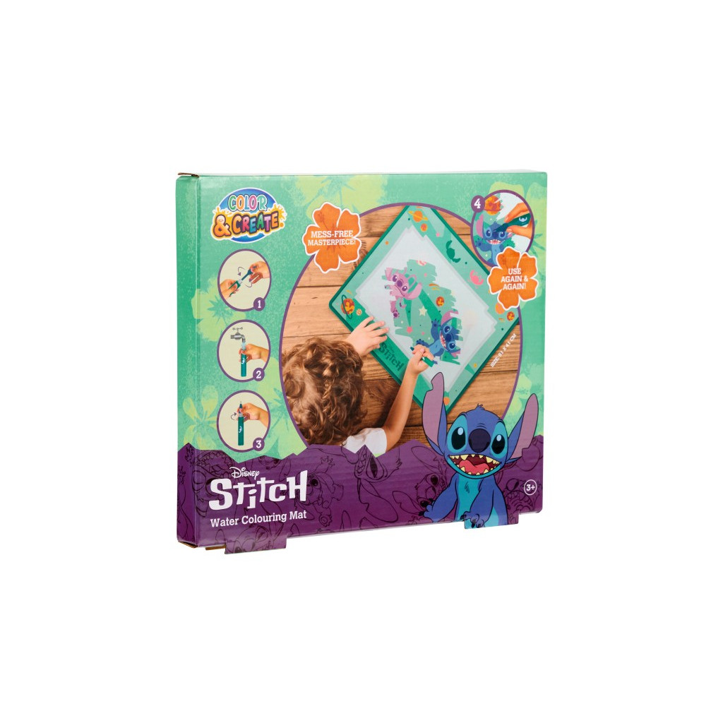Kreativní podložka na vodní malování s oblíbeným hrdinou Stitch. Děti mohou pomocí speciálního vodního pera vybarvovat obrázky na podložce – po zaschnutí voda zmizí a mohou začít znovu.Opakovaně použitelná – žádné barvy ani nepořádek,snadno přenosná, vhodná na doma i na cesty.