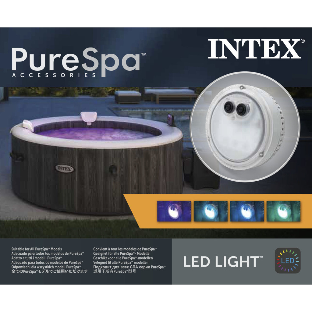 Multibarevné světlo do vířivky svítí v 5 různých barvách: bílá, zelená, světle modrá, modrá, fialová.