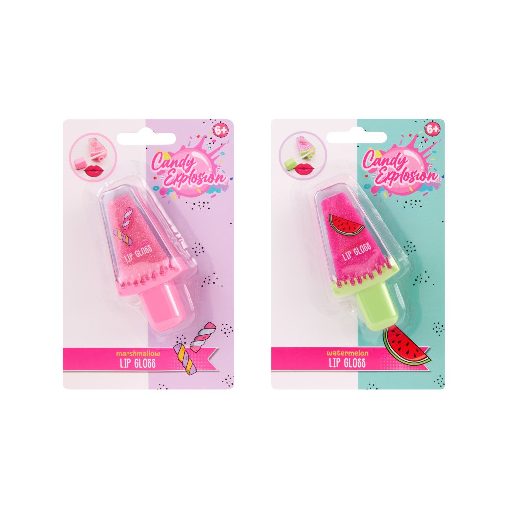 Lesk na rty Candy ve tvaru nanuka je zároveň přívěsek. Dvě různá barevná provedení – dvě příchutě.