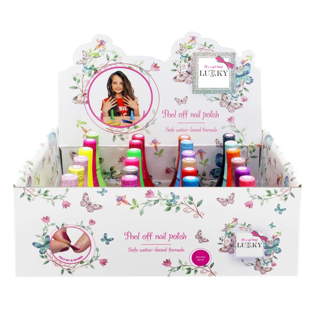 Lukky slupovací lak na nehty se třpytkami (displej 24 ks)