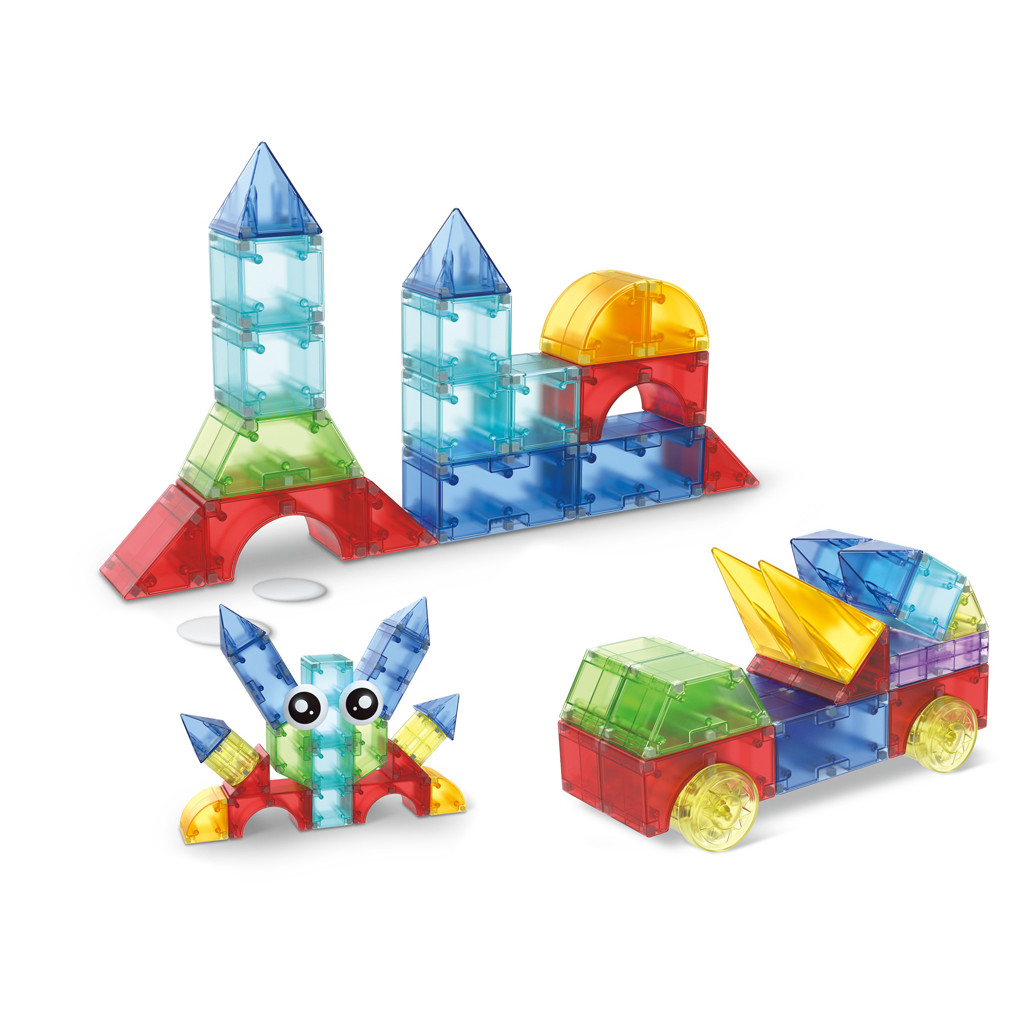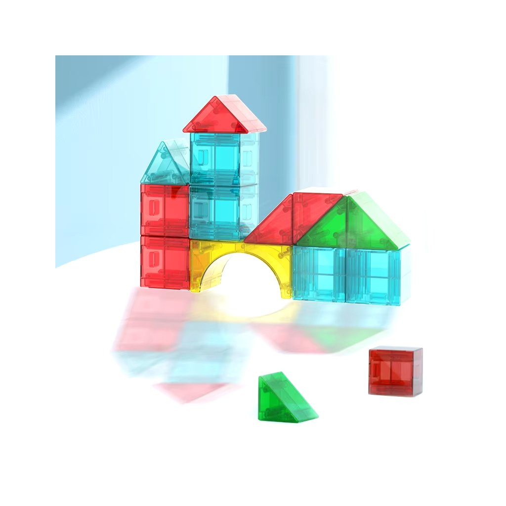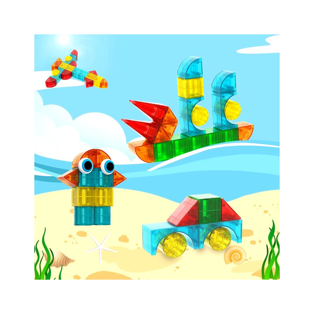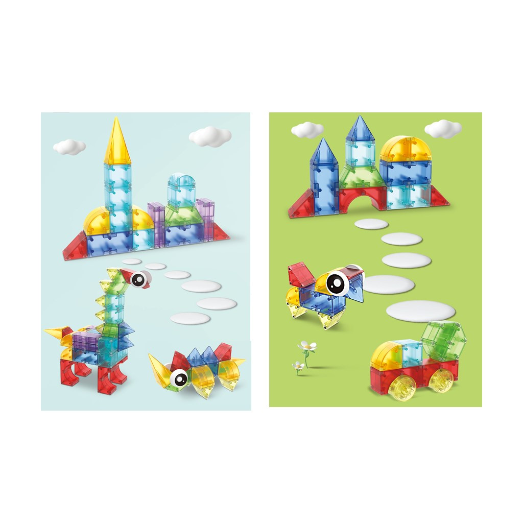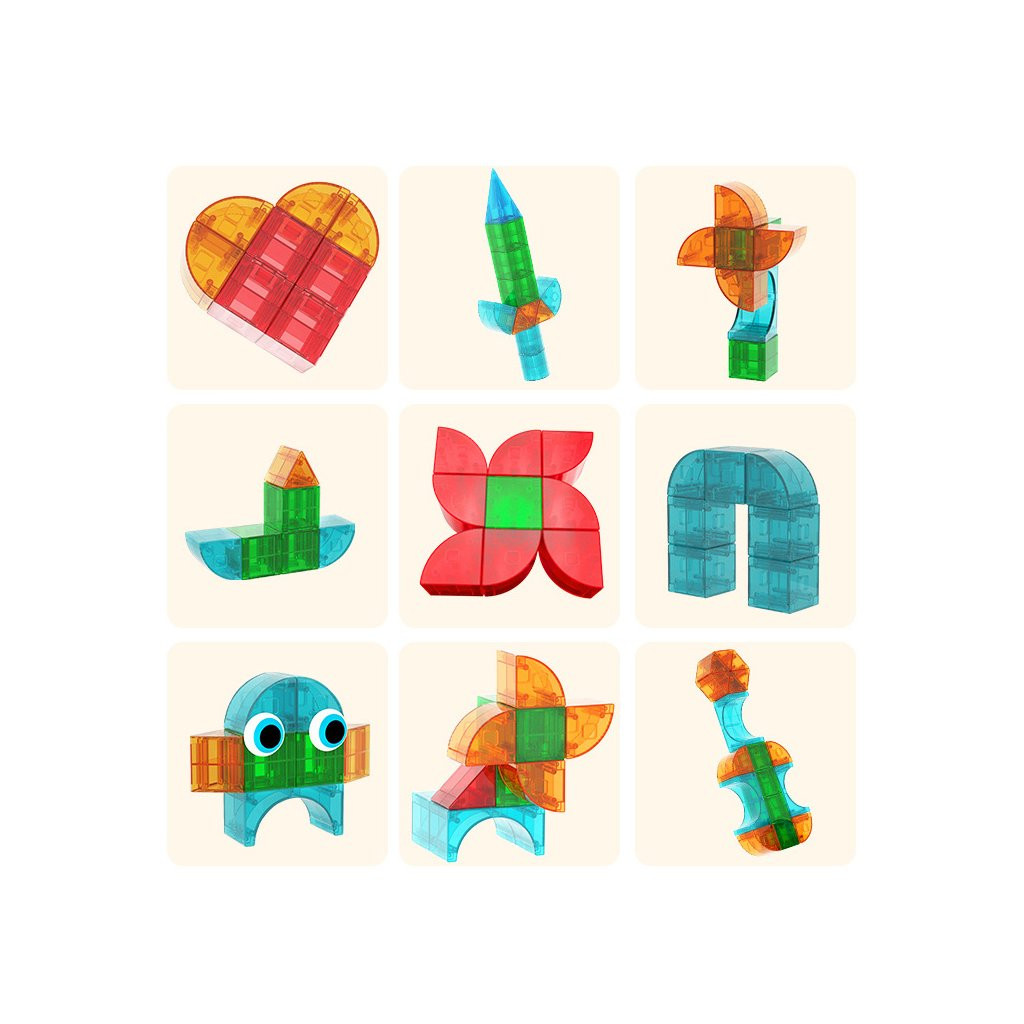 Magnetická stavebnice Magnexia s průhlednými dílky různých tvarů bez ostrých hran a se zaoblenými rohy dává dětem možnost plně rozvinout svou fantazii a tvořivost. Díky kvalitním bezpečně zabudovaným magnetům jde stavění hezky od ruky, konstrukce je pevná a drží dobře pohromadě. Děti mohou vytvářet jednodušší i složitější objekty, písmenka, číslice, dopravní prostředky, zvířátka či celé budovy. Během hry se učí rozpoznávat tvary, barvy a velikosti. Stavění trojrozměrných struktur pomáhá rozvíjet jejich schopnost vizualizace. Manipulace s malými magnetickými dílky podporuje jemnou motoriku a koordinaci ruka-oko. Při společném stavění se učí spolupracovat, komunikovat a řešit problémy. Sdílení stavebnicových dílků a spolupráce na projektech podporuje sociální interakce. Průhledné dílky umožňují dětem sledovat, jak světlo prochází různými barvami a tvary, což může rozvíjet jejich estetické cítění.