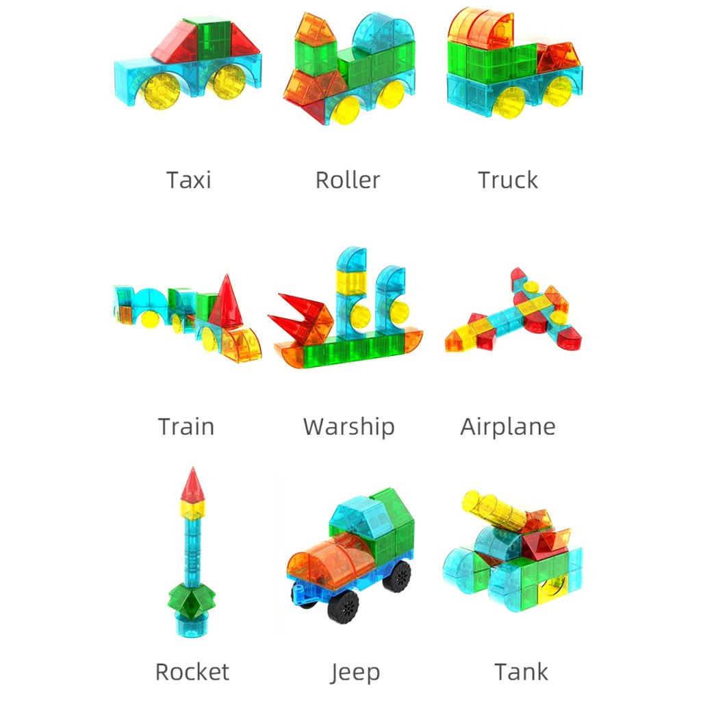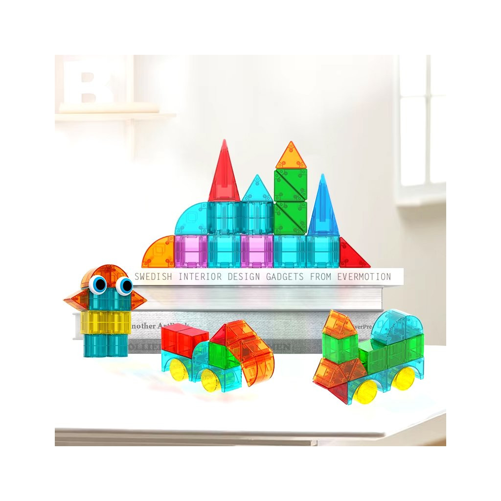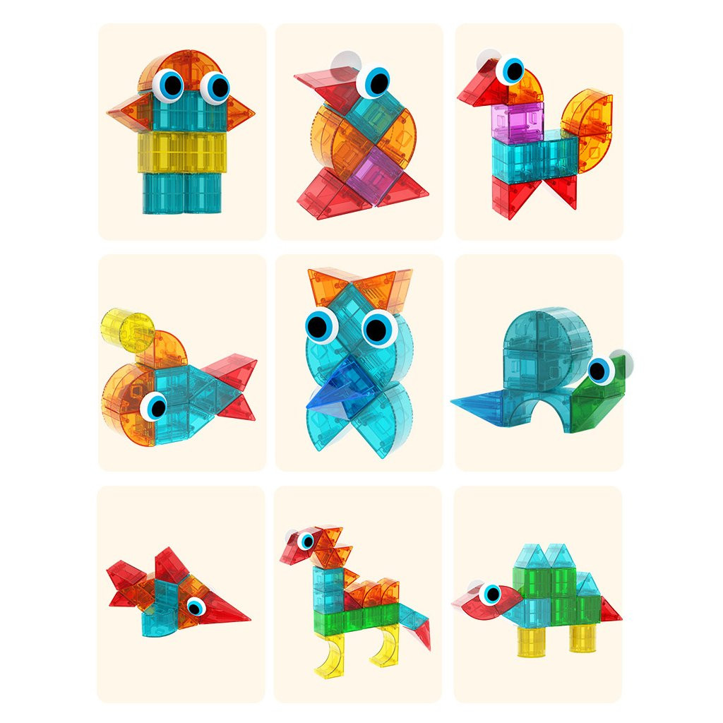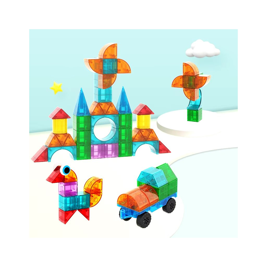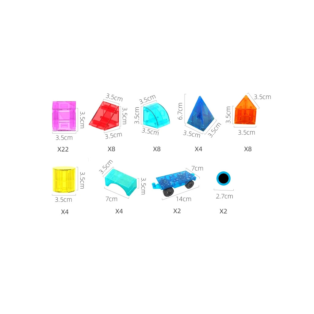 Magnetická stavebnice Magnexia s průhlednými dílky různých tvarů bez ostrých hran a se zaoblenými rohy dává dětem možnost plně rozvinout svou fantazii a tvořivost. Díky kvalitním bezpečně zabudovaným magnetům jde stavění hezky od ruky, konstrukce je pevná a drží dobře pohromadě. Děti mohou vytvářet jednodušší i složitější objekty, písmenka, číslice, dopravní prostředky, zvířátka či celé budovy. Během hry se učí rozpoznávat tvary, barvy a velikosti. Stavění trojrozměrných struktur pomáhá rozvíjet jejich schopnost vizualizace. Manipulace s malými magnetickými dílky podporuje jemnou motoriku a koordinaci ruka-oko. Při společném stavění se učí spolupracovat, komunikovat a řešit problémy. Sdílení stavebnicových dílků a spolupráce na projektech podporuje sociální interakce. Průhledné dílky umožňují dětem sledovat, jak světlo prochází různými barvami a tvary, což může rozvíjet jejich estetické cítění.