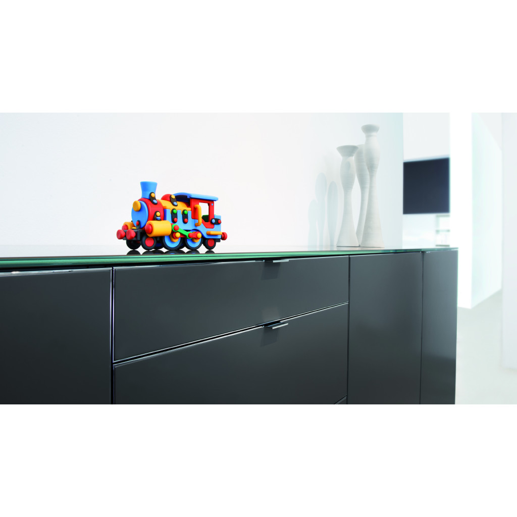 Designová hračka v podobě malé lokomotivy