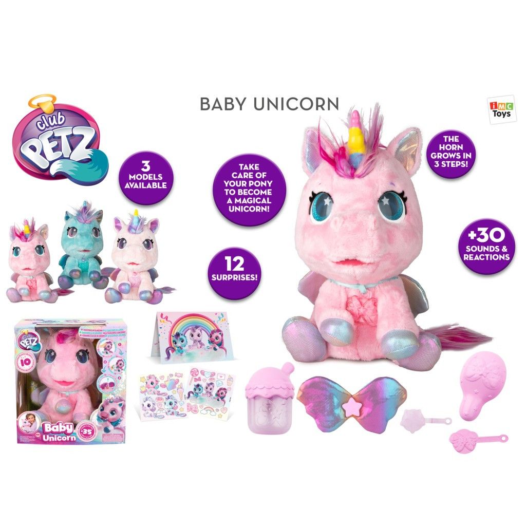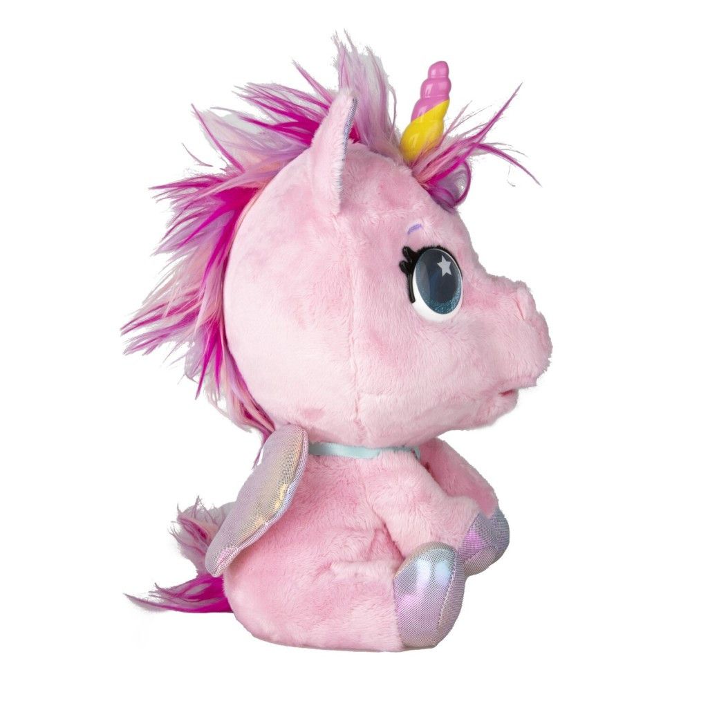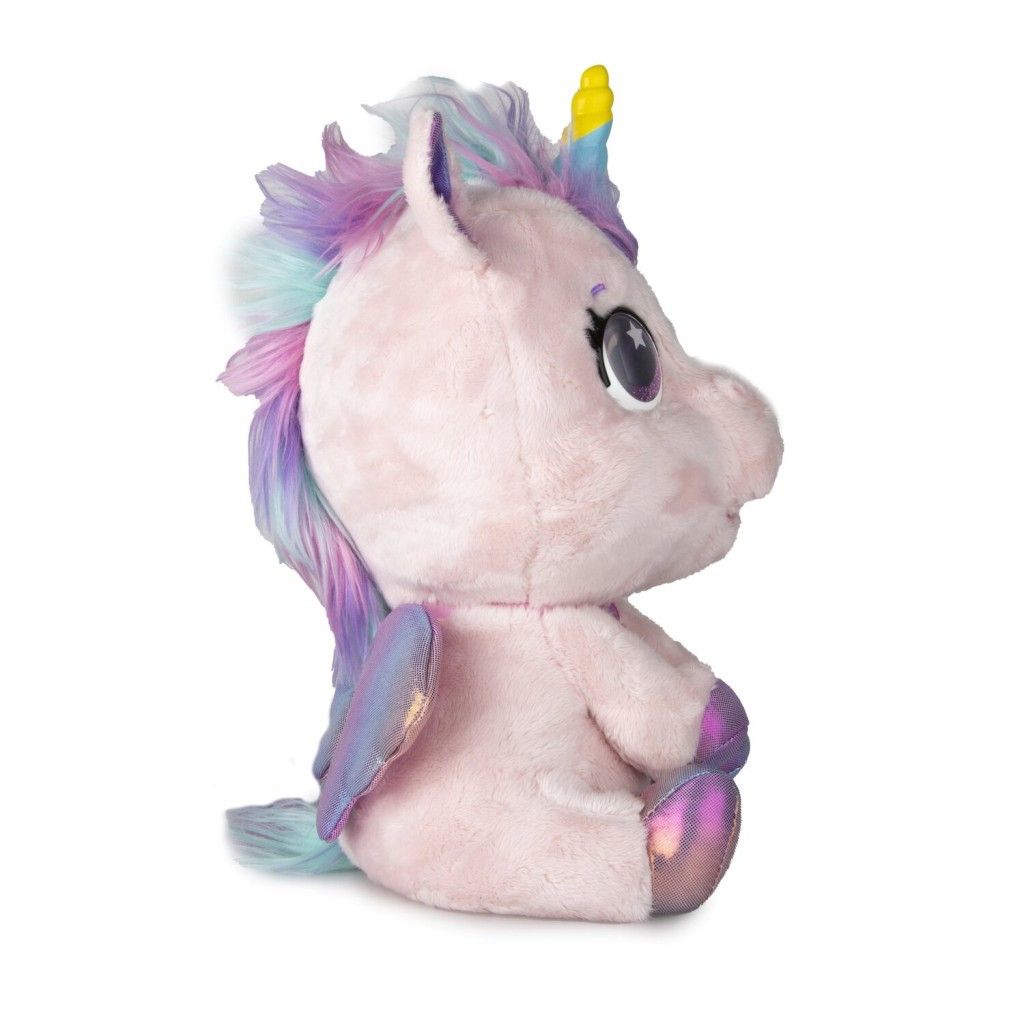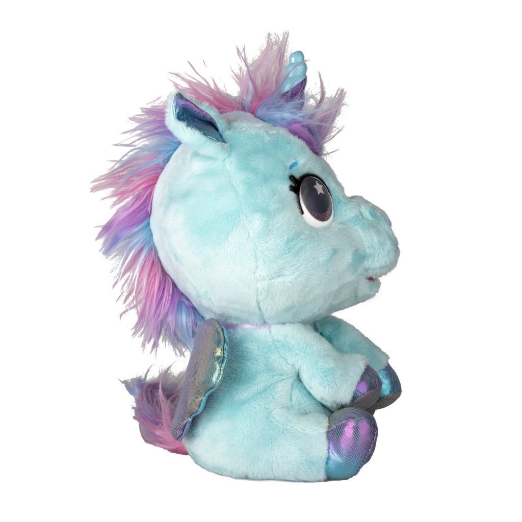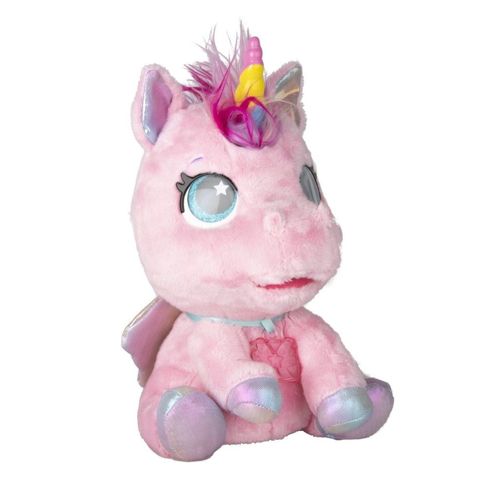 Interaktivní plyšový poník, který se díky tvé péči promění v jednorožce. Překvapí tě více než 30 zvuky a interakcemi. Poníka pohlaď, učeš, nakrm a sleduj jak mu ve 3 fázích magicky poroste barevný roh. Součástí balení je 9 různých doplňků (lahvička, hřebínek, křídla, sponky, samolepky, přívěšek, certifikát o adopci). Dokonči proměnu svého poníka v jednorožce tím, že mu připneš duhová křídla a přívěšek. K dostání 3 různé barevné varianty (bílý, růžový, modrý). Vyžaduje 3× AA baterie, nejsou součástí balení.