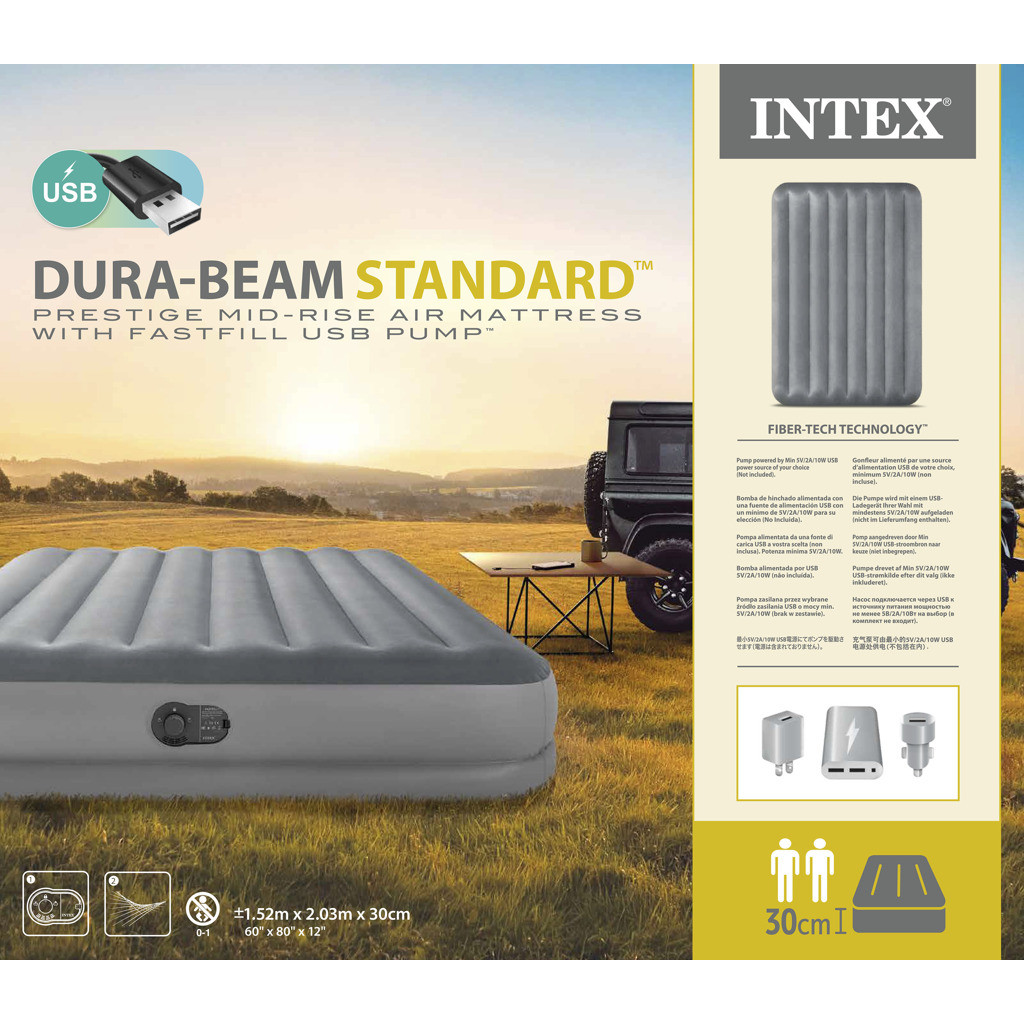 Nafukovací postel o velikosti 152 cm x 203 cm x 30 cm. Maximální nosnost 272 kg. Čas nafouknutí je 5,5 minuty. Snadné nafukování, vyfukování a uskladnění. Zabudovaná elektrická pumpa.