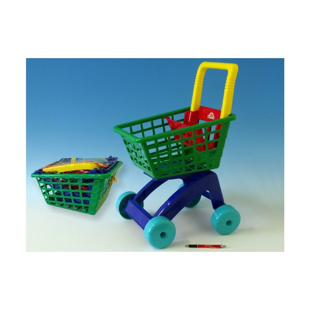 Nákupní košík ve dvou barevných provedeních se sedačkou pro panenku. Vyrobeno z kvalitního plastu v EU.