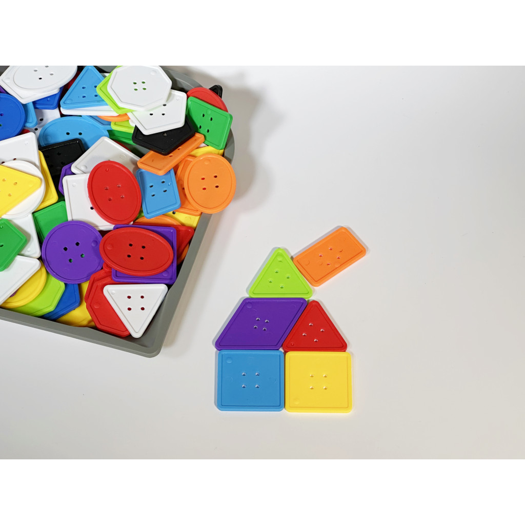 Hra Navlékací tvary umožňuje dětem vytvářet různé druhy 2D modelů (postavičky, kytičky, letadla atd.) a také procvičovat základní početní operace. Obsahuje tkaničky a díly rozmanitých geometrických tvarů, přičemž každý tvar má čtyři otvory umožňující rozličné vzory navlékání. Tvary lze počítat, třídit, řadit, navlékat, vytvářet s nimi nejrůznější barevné kombinace, použít je k sestavování jednoduchých matematických příkladů. Děti se tak přirozeně učí trpělivosti, barvocitu, zlepšují své motorické dovednosti, seznamují se se základy matematiky a geometrie.