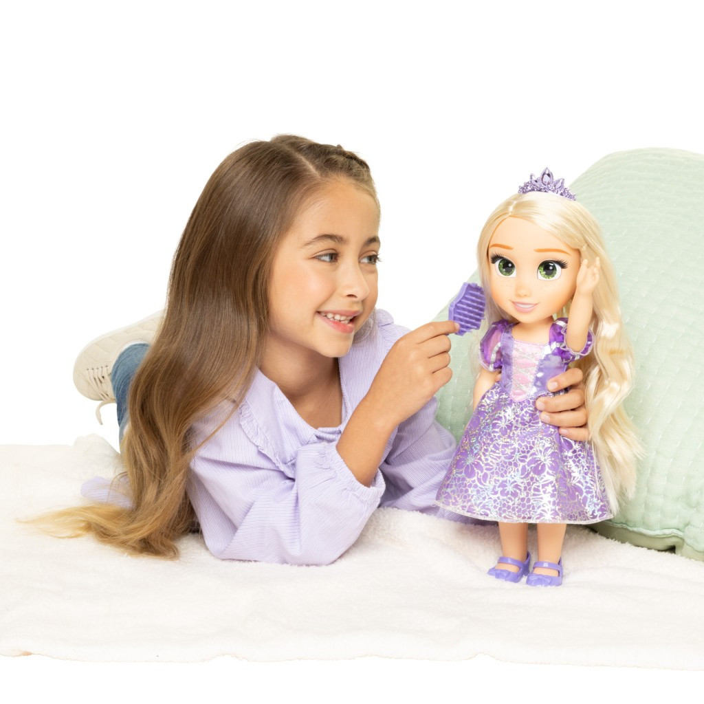Panenka Disney Princezna Locika 40 cm – panenka má třpytivé oči, krásné šaty s třpytívými aplikacemi, botičky, kartáč na vlasy, má kloubové spojení krku, rukou a trupu,
