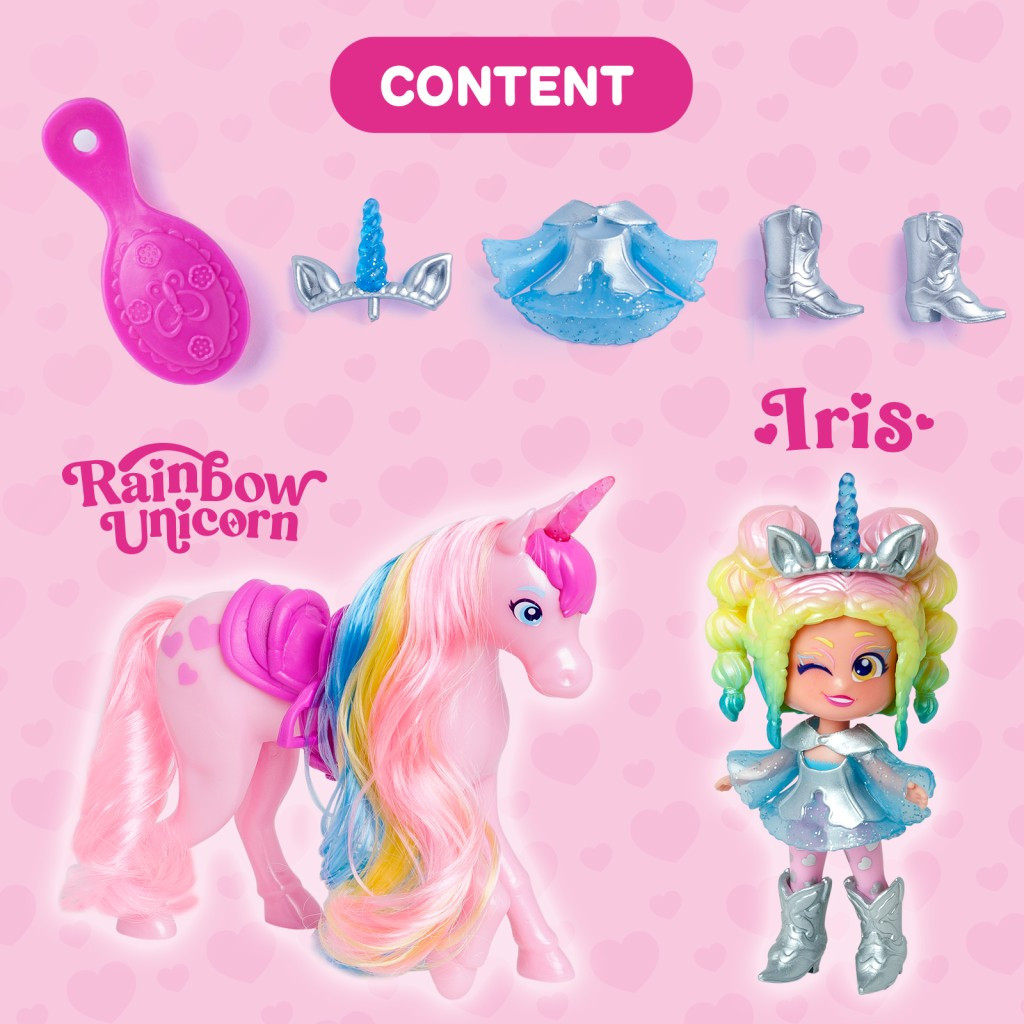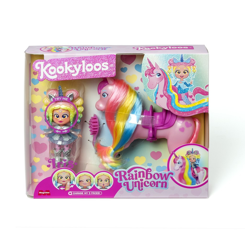 Věříte na jednorožce? Ve světě KookyLoos je všechno možné Objevte Auroru a jejího duhového jednorožce jménem Star, jehož hříva je vyrobena z pravých vlasů! Rozčešte je kartáčem a vyzkoušejte různé styly. Připravte se na tisíce dobrodružství s KookyLoos Nezapomeňte, že každý KookyLoos má své vlastní příslušenství, které můžete kombinovat a vyměňovat s ostatními KookyLoos, a měnit jejich obličeje jediným kliknutím. Sada obsahuje: 1 panenku, 1 jednorožce, 1 kartáč, 1 oblečení.