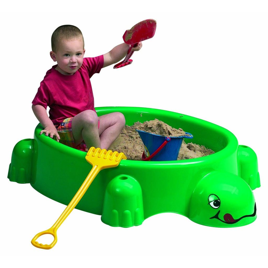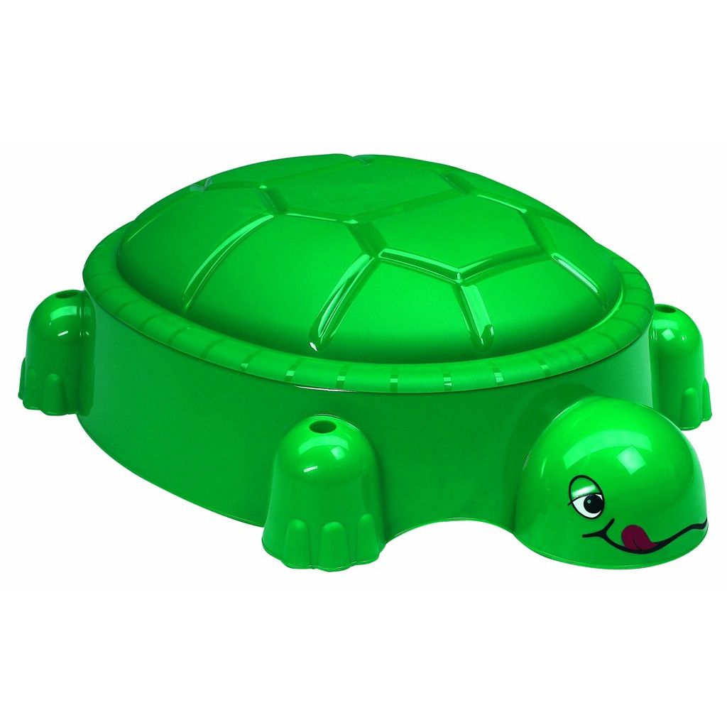 Pískoviště želva tmavě zelené s víkem. Rozměr pískoviště 115×83×35 cm. Vhodné pro děti od 18+m. Vyrobeno z kvalitního plastu v EU.