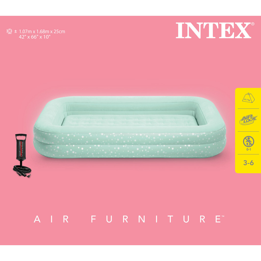 Nafukovací postei s ruční pumpou. Pro děti od 3 do 8 let o rozměru: 107cm x 168c m x 25 cm. Součástí balení je přenosný vak.
