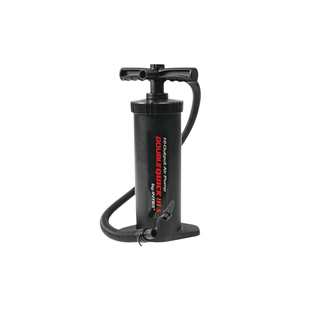 Pumpa ruční DOUBLE QUICK II. Má 3 spojovací trysky, které pasují na malé, střední i velké nafukovací ventily. Umožňují též snadné vypouštění vzduchu opačným koncem nástavce. Universální připojení na ventil umožňuje nafukovat matrace, čluny, míče a další.Pro snížení námahy nafukuje jak při tlaku dolu, tak při tahu nahoru Rozměry: 37 cm.