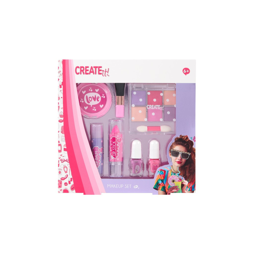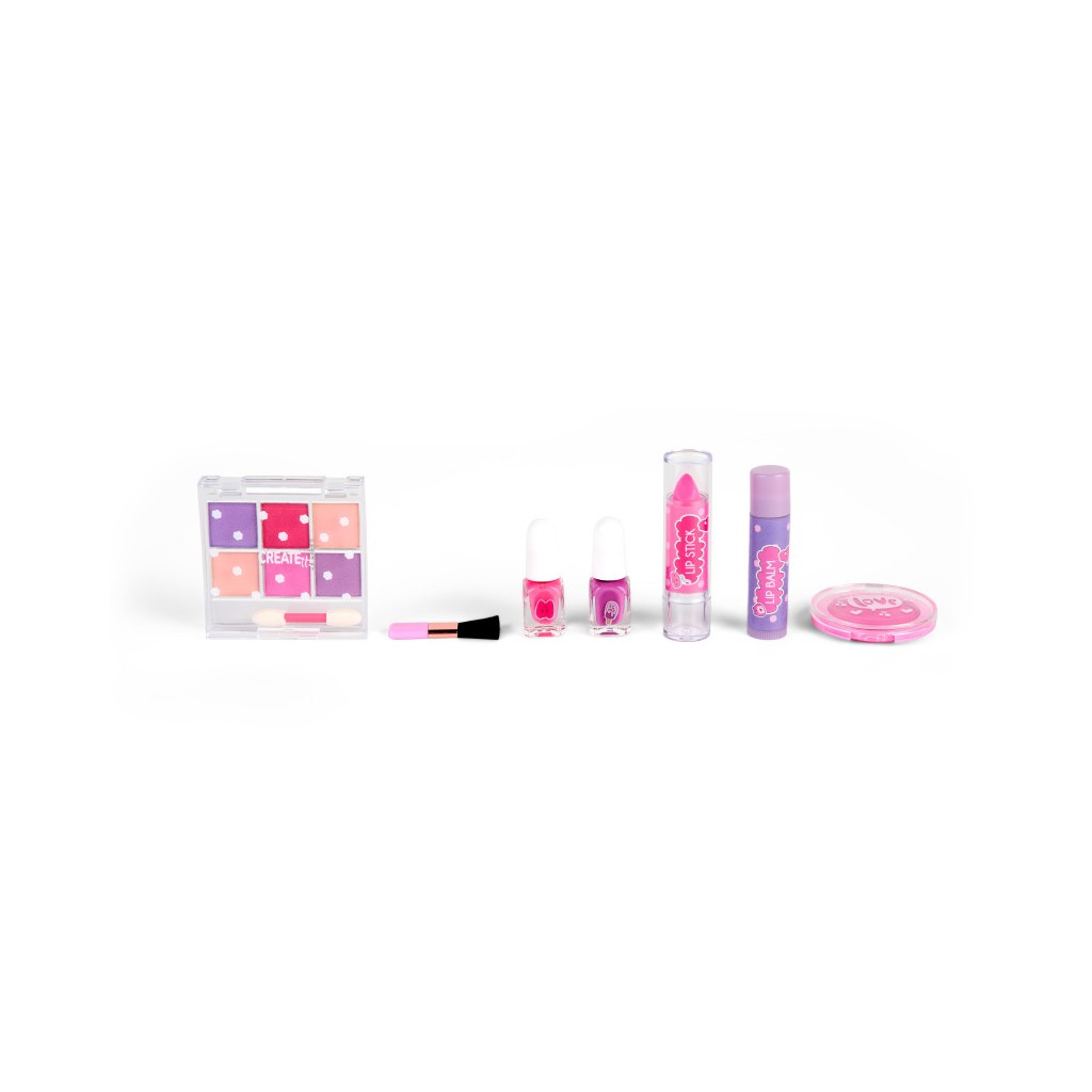 Sada líčení Creat it Pink Turquoise – obsahuje 2 laky na nehty, křídu na vlasy, velký štetec, balzám na rty, rtěnku, malý oboustranný štěteček, sada 6 třpytívých stínů na oči.