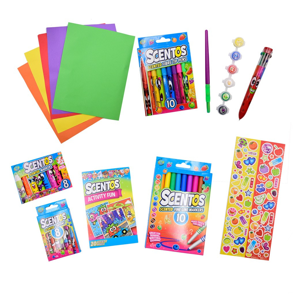 Obrovská zásoba kreativity v jednom balení! Tento Scentos set nabízí středně velký výběr voňavých fixů, pastelek, voskovek a dalších tvořivých pomůcek, které potěší malé umělce i začátečníky. Sada obsahuje vše potřebné pro hodiny zábavy při kreslení, vybarvování a tvoření.