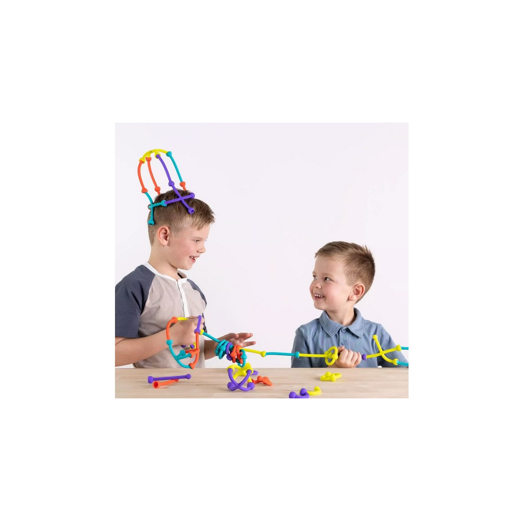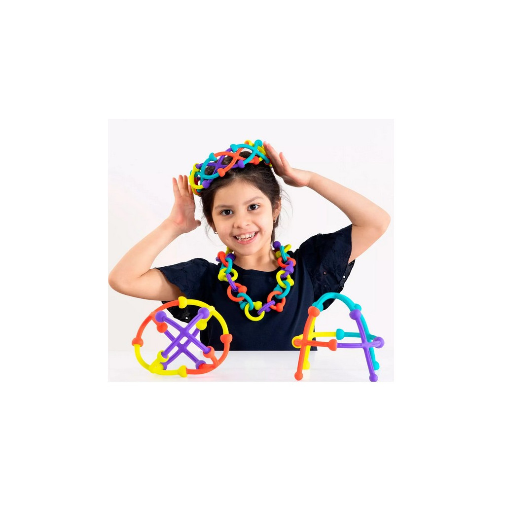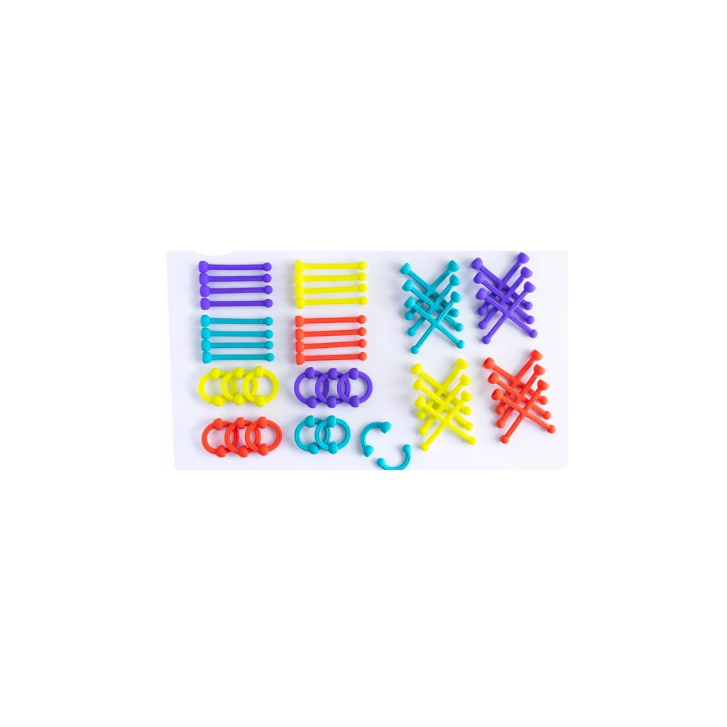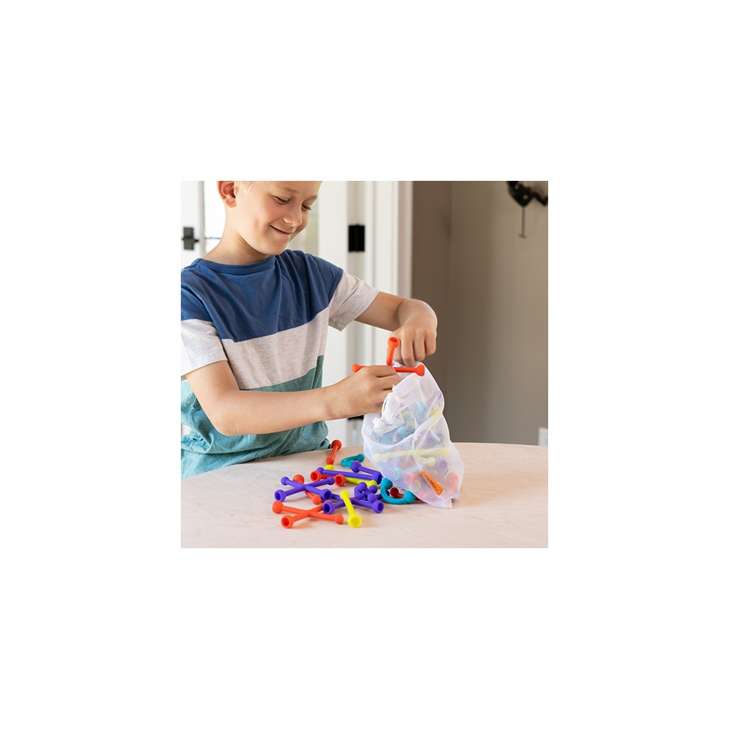 Stavebnice SAJETO Plip Kit s barevnými díly ve tvaru oblouků, tyčinek a písmena X, vyrobenými z pružného silikonu, přináší dětem spoustu zábavy, podporuje jemnou motoriku, prostorové uvažování, kreativitu a dovednosti STEM. Spojováním dílů lze vytvářet úžasné věci, jako např. náhrdelníky, řetězy, královské koruny, květiny, rozmanité geometrické tvary. SAJETO Plip Kit otevírá dětem bránu do světa nekonečného kreativního stavění. Díly jsou spojeny kulovými klouby, drží pevně pohromadě, při rozpojování vydávají typický zvuk. Jsou snadno omyvatelné, vyrobené z vysoce kvalitních materiálů zajišťujících odolnost.